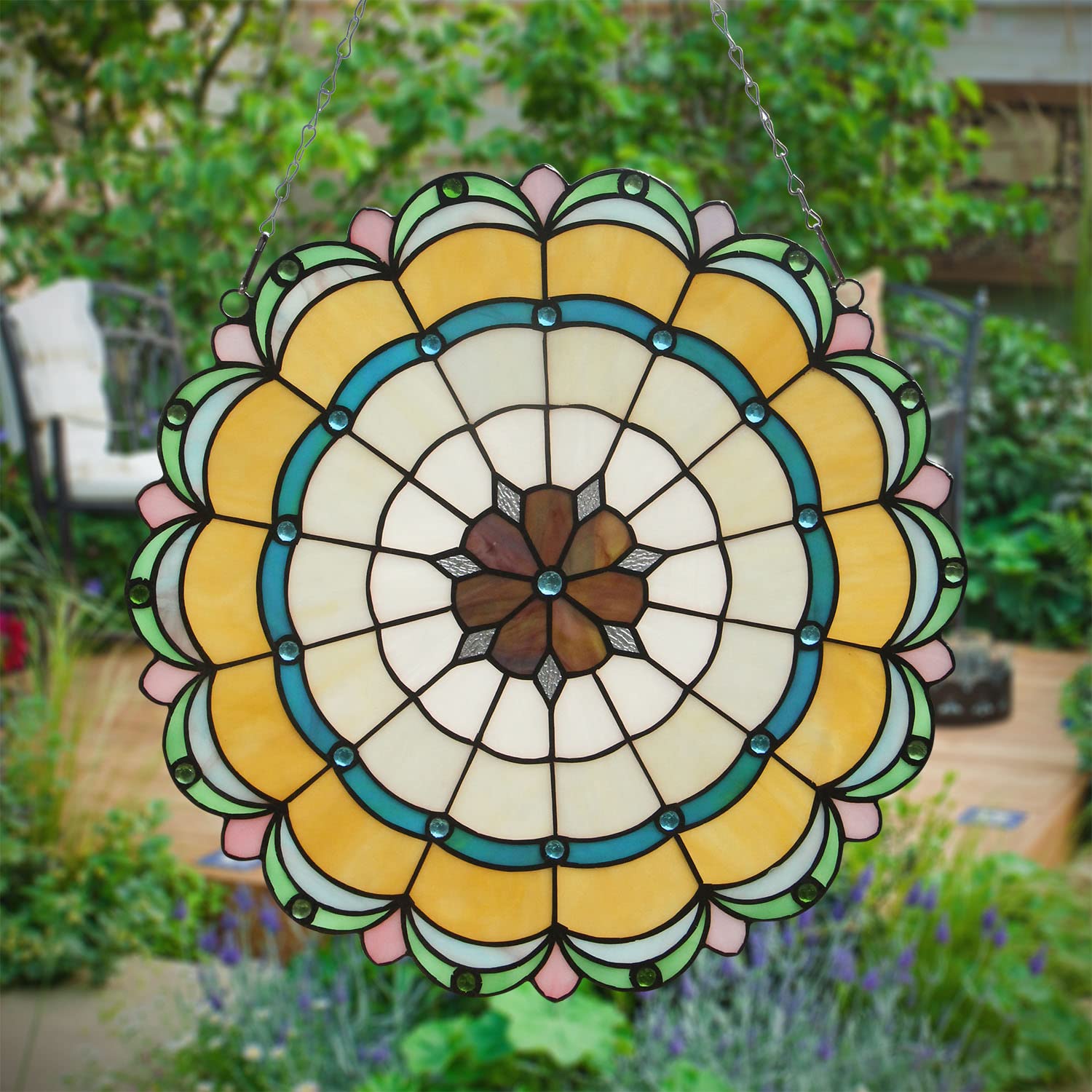 16 Inch Round Stained Glass Window Hanging Panel Tiffany Style Ornament Handmade