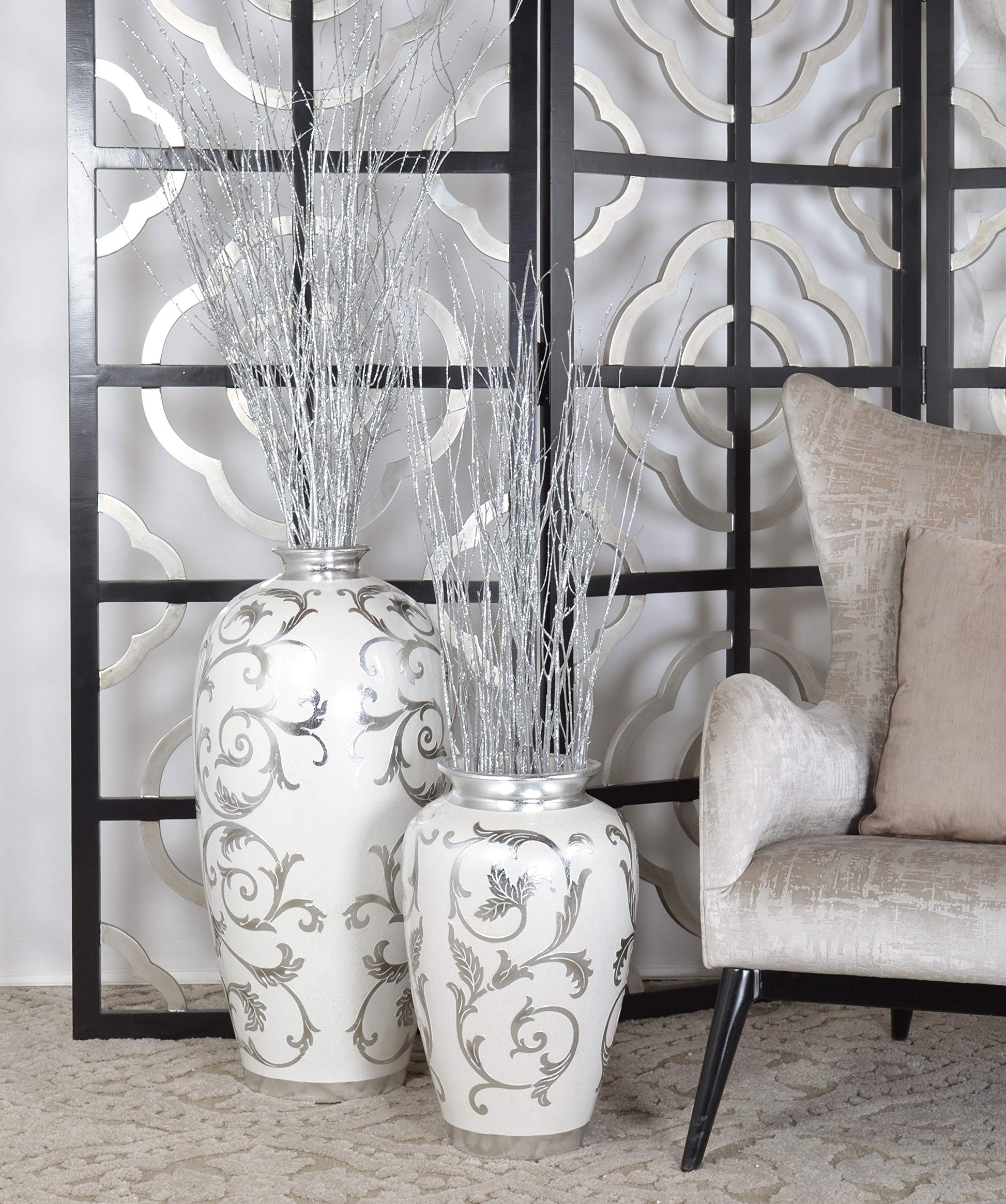 18" H White and Silver Decorative Handcrafted Vase Urn Bowl