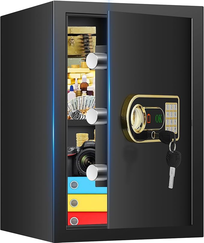 | Special Feature | Anti-Theft, Combination Lock, 3 Removable Shelves, Alarm System, Sensor Light, Safes for home use fire and water proof, Fire proof safe for home documents |