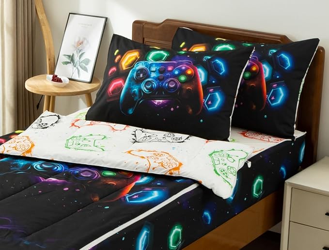 - Blue Game console with space universe background pattern design zipper bedding, is a cool gift for Teens Girls Boys Friends. 100% brushed microfiber fabric is breathable and durable, with high tensile strength, and it's exceptionally soft and comfortable, sleeping in it is like being gently hugged.