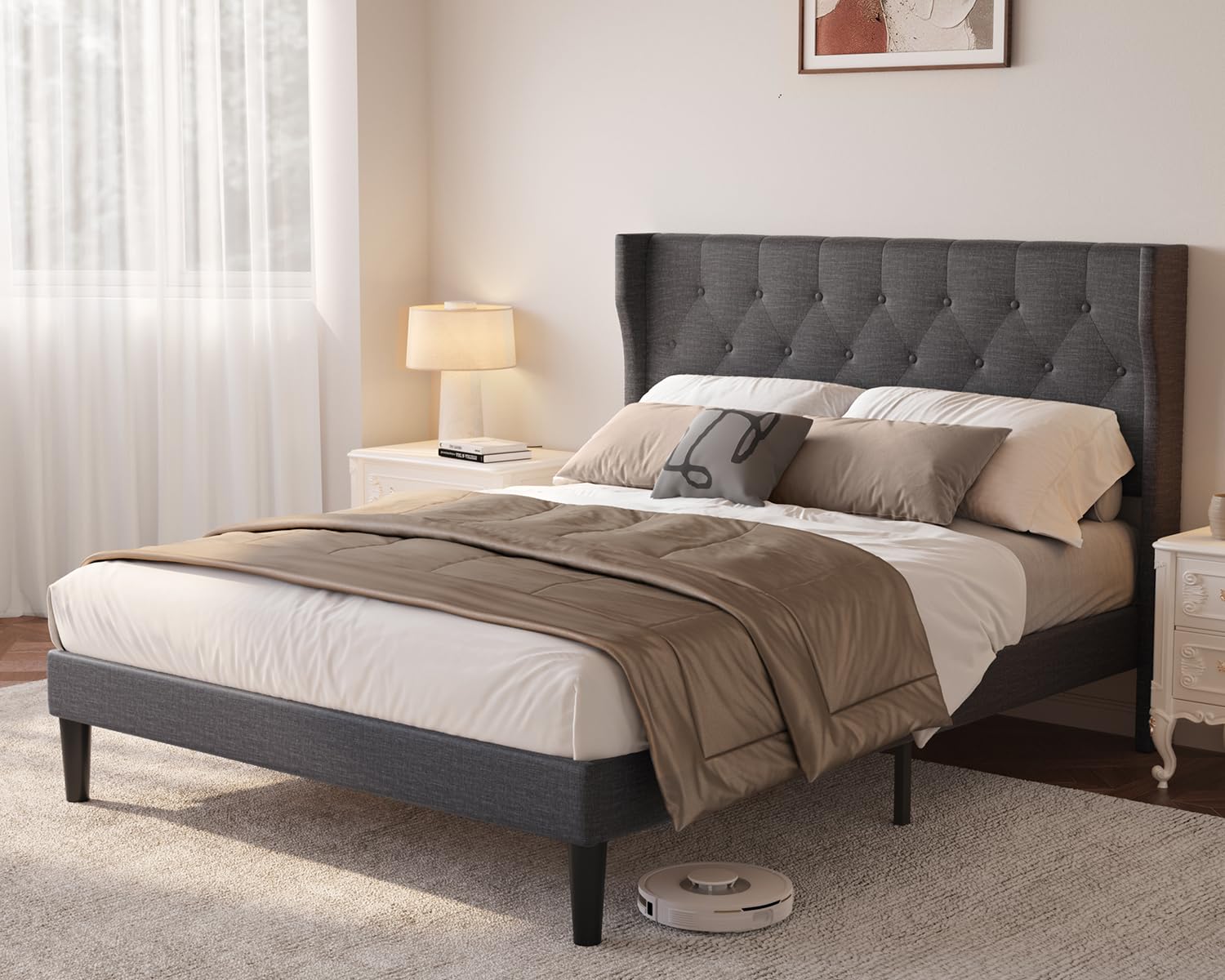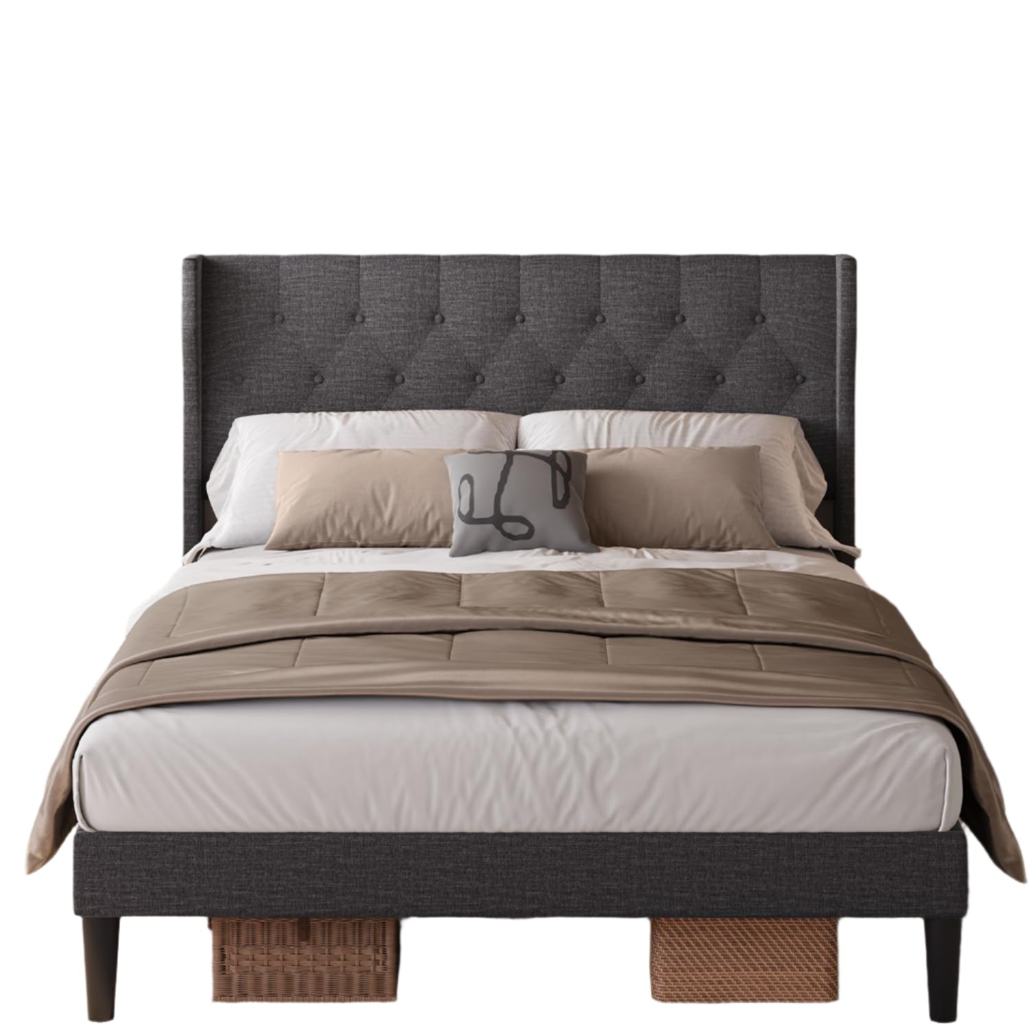 - Upholstered Bed Frame: The queen bed frame with headboard made of breathable linen fabric, providing a soft and comfortable leaning experience