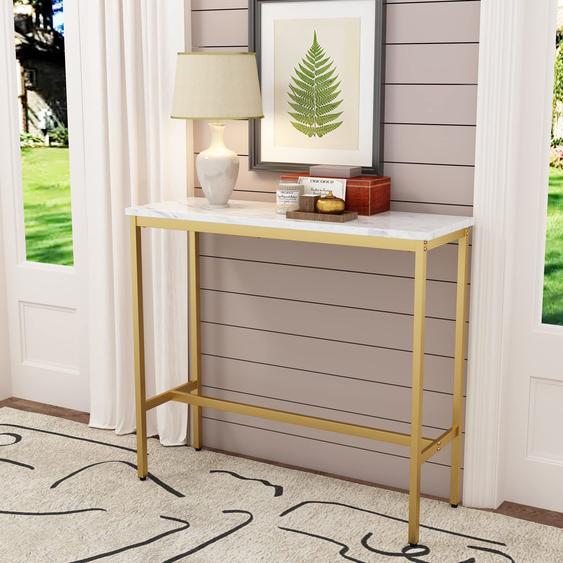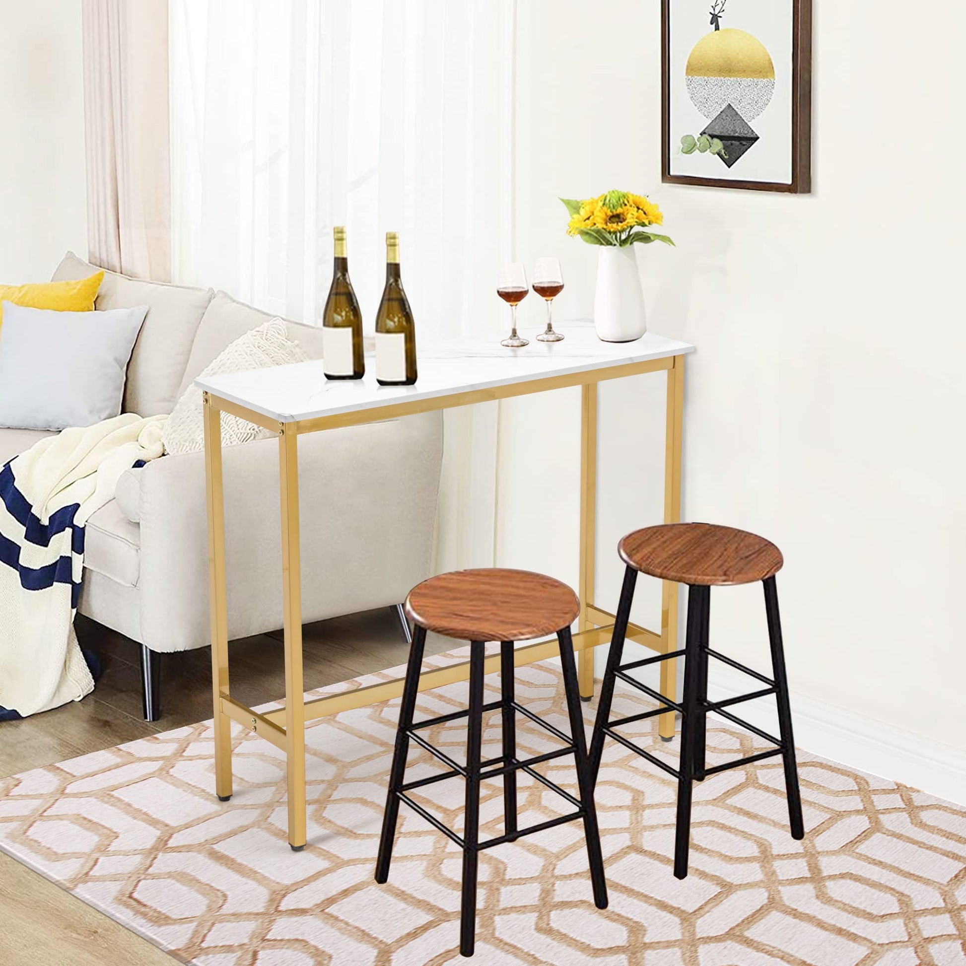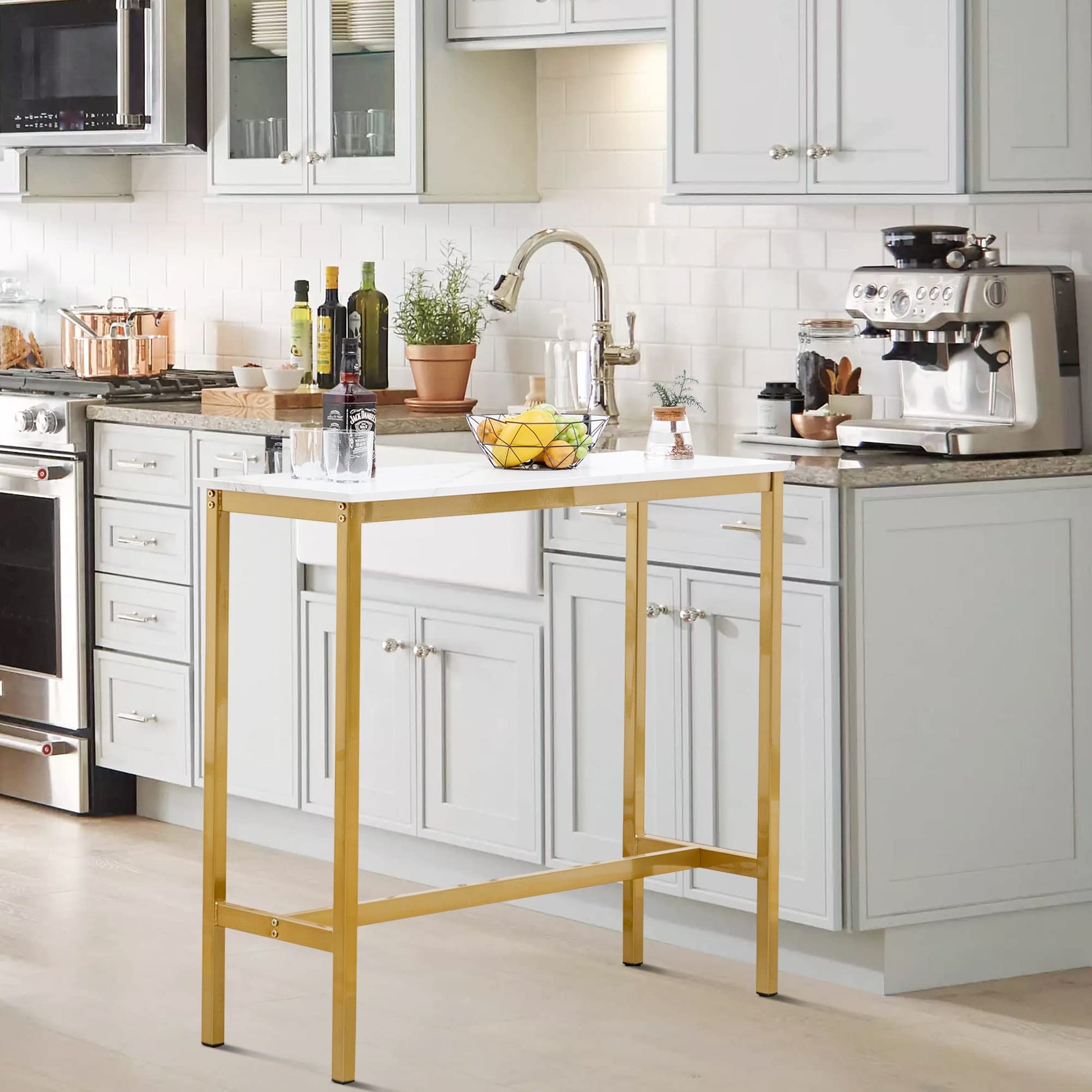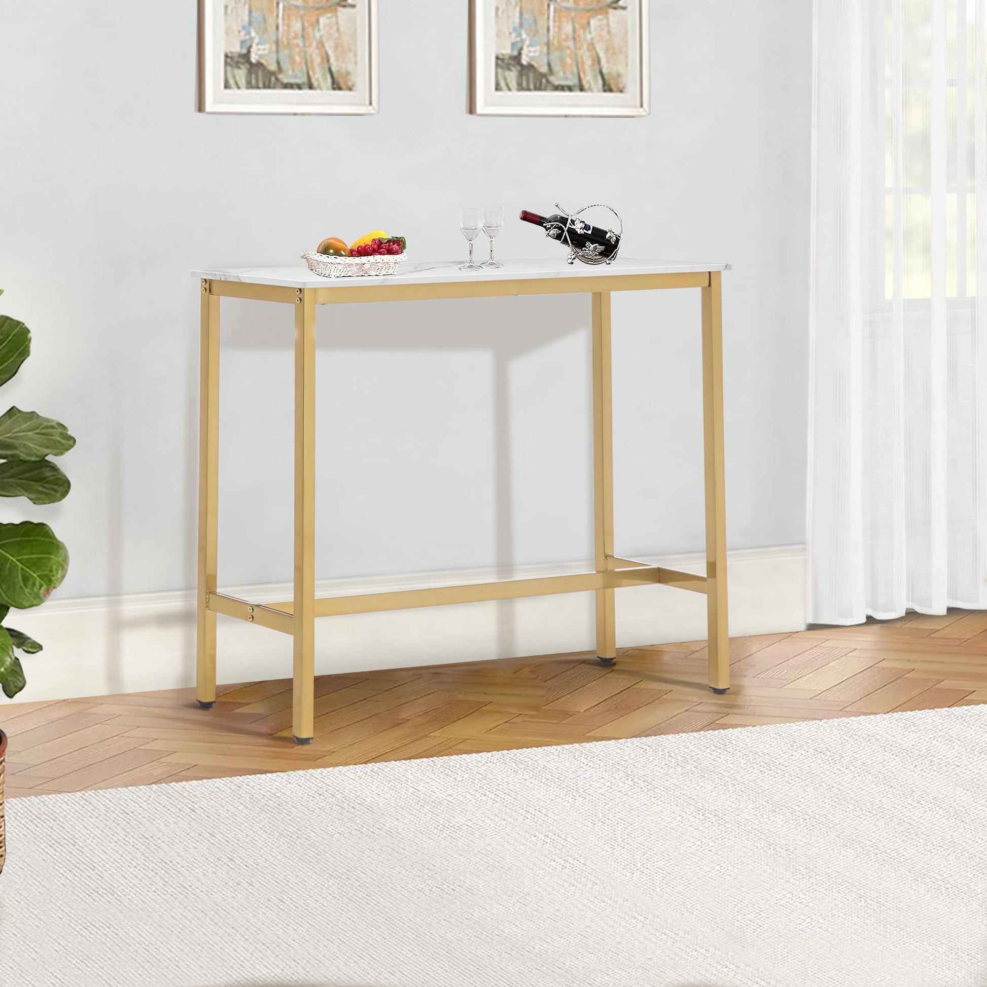 40" Bar Table,Rectangular Industrial Bar Height Table with Sturdy Gold Metal Frame