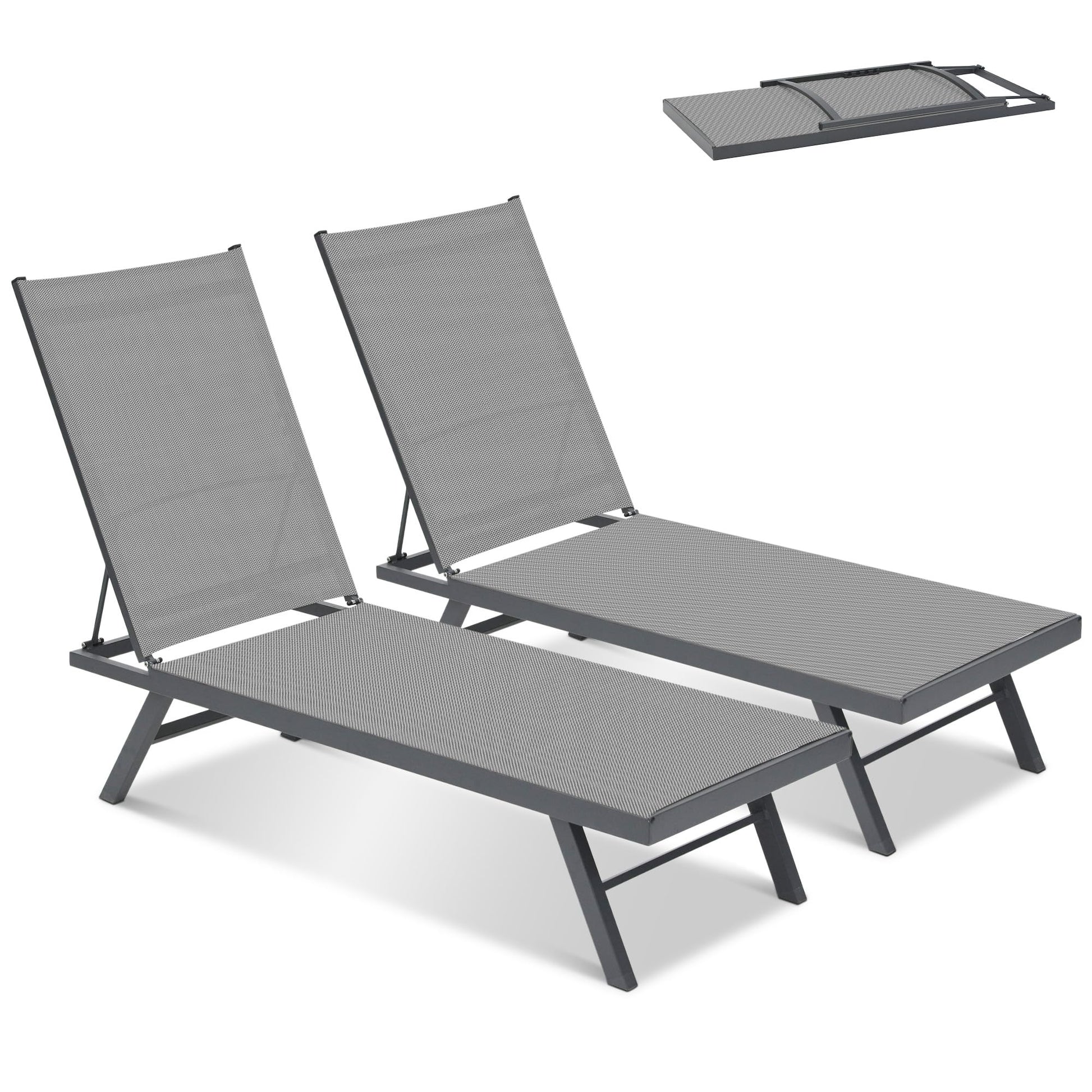 - FHVIT aluminum patio lounge chair features a convenient foldable design, making it easy to store and transport. Perfect for saving space when not in use, this chair is ideal for small patios, poolside areas, or even for taking on trips to the beach or camping.