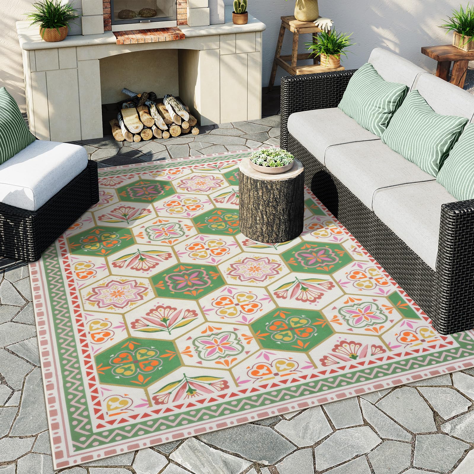 Large Outdoor Rug 8x10, Floral Indoor Outdoor Patio Rug