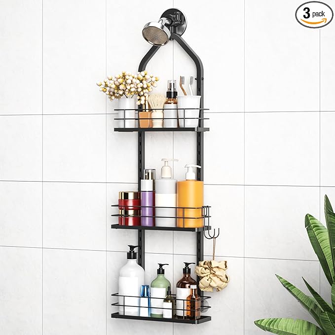 - Height Adjustable:The shower caddy over showerhead features a design to fit items of varying heights,Free to adjust the distance between each baskets,Ideal for organizing bath essentials, including taller shampoo bottles and lotion and conditioner each basket holds up to 10 lbs.