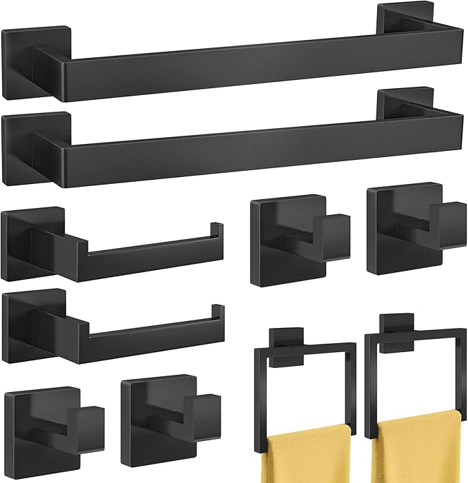 Bathroom Hardware Accessories Set, 10 Piece Black Towel Bar Set Stainless Steel