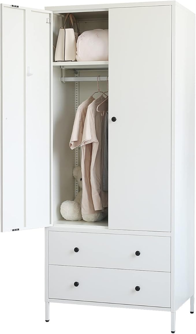Bedroom Armoires, Metal Wardrobe Closet with Hanging Rod