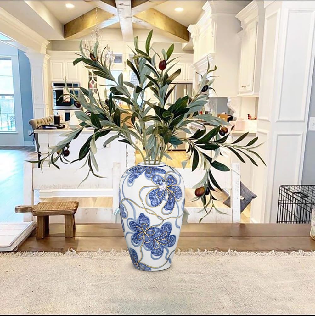 - Elegant Blue and White Floral Design – Instantly elevate your space with these ceramic vases featuring a timeless hand-painted blue floral motif with delicate gold accents. A stunning centerpiece that blends traditional craftsmanship with modern charm, perfect for enhancing your home décor