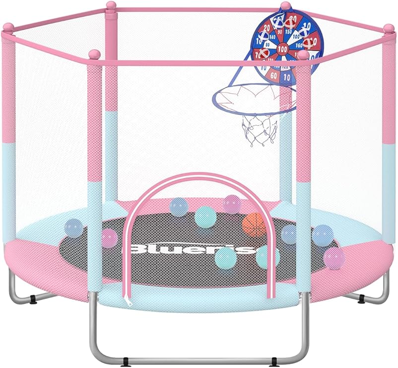 - The newly upgraded trampoline is an ideal Christmas gift for your toddlers. BLUERISE 5FT trampoline with basketball hoop provides great fun and jumping exercise.