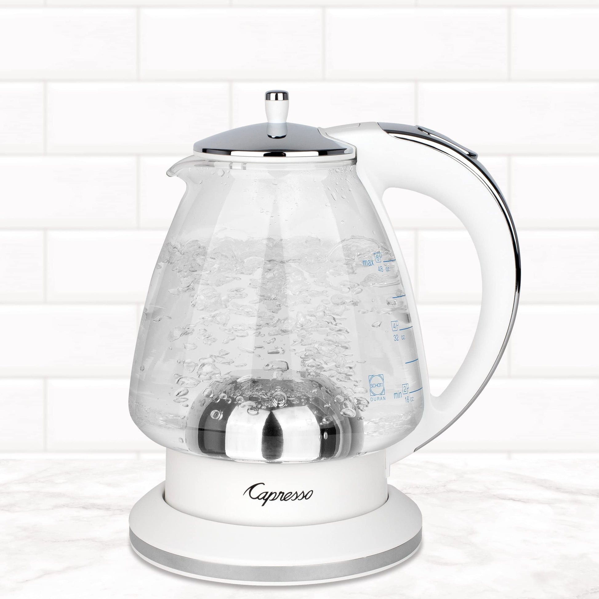 H2O Glass Kettle, 240.02, White and polished chrome, 48 ounces
