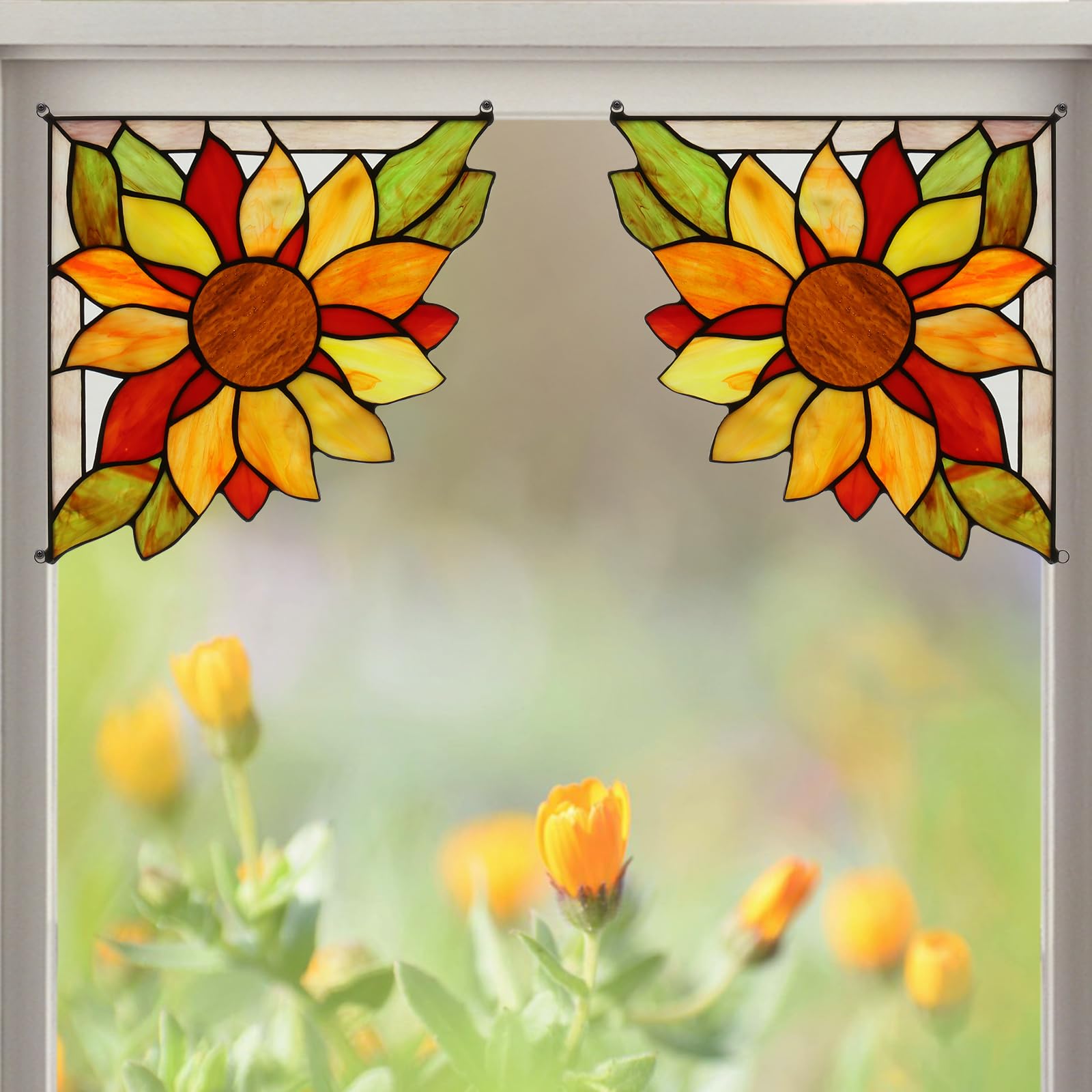 1 Pair Stained Glass Window and Door Sunflower Corner Tiffany Style Stained Glass