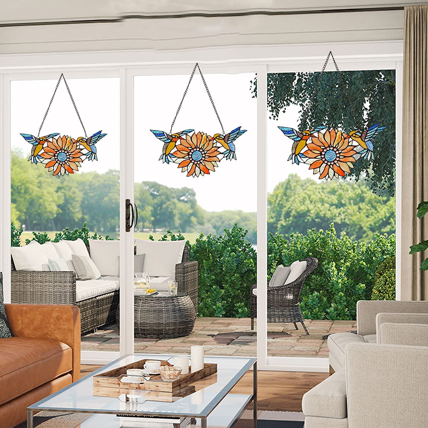 Stained Glass Window Hangings Sunflower Birds Window Panels Suncatchers