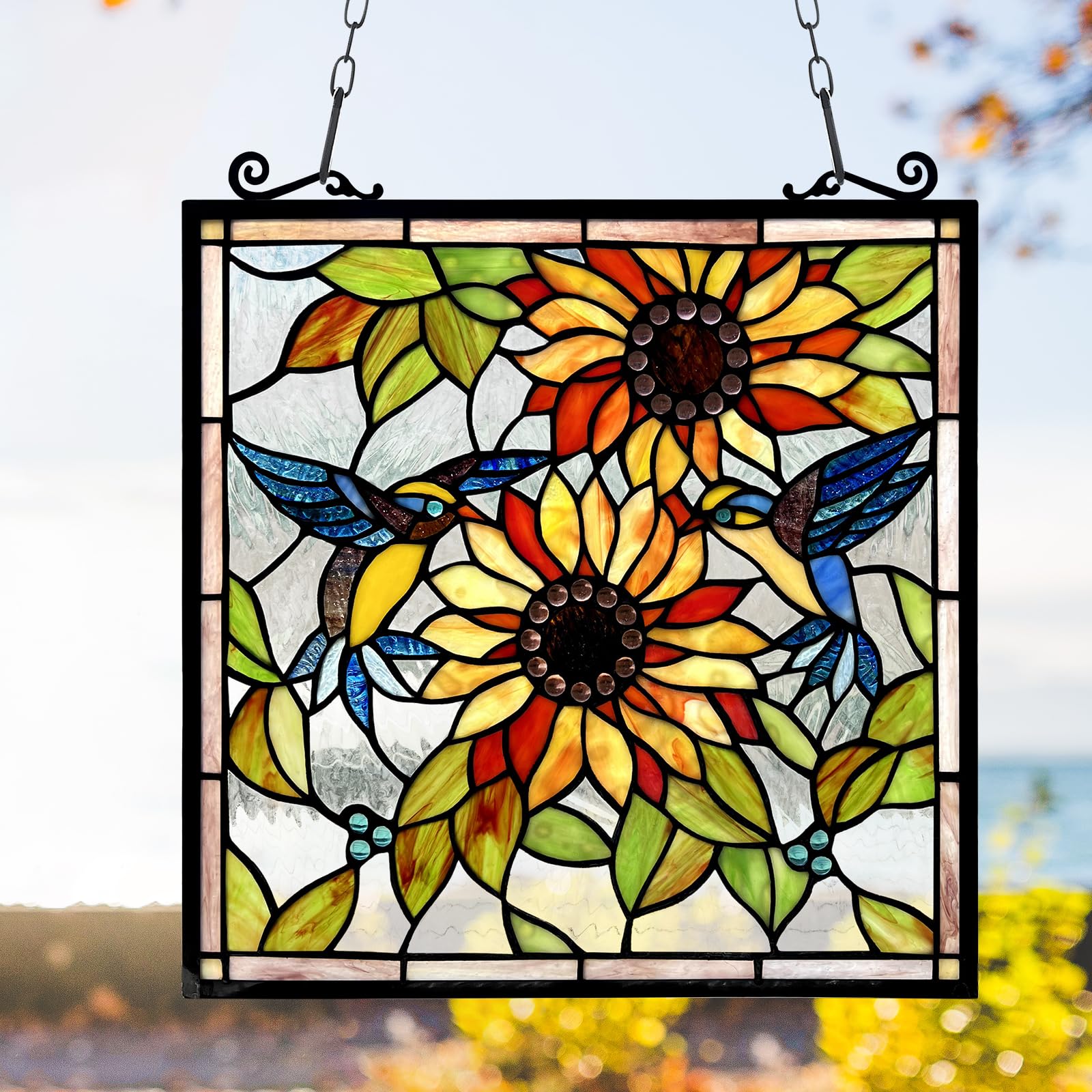Sunflower and Birds Stained Glass Window Hangings Panels Tiffany Style Traditional