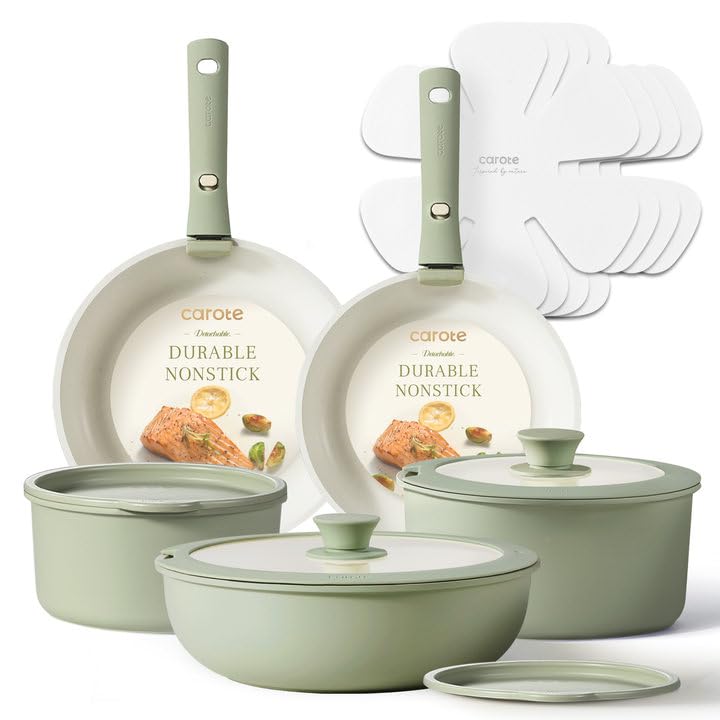 - Balanced convenience-rich features, rapid & even heat transfer, and nonstick performance as the same as other Carote cookware sets.