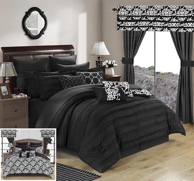 - A BED IN A BAG BUILT TO LAST – The Chic Home Hailee Bed in a Bag set is made with strict quality control standards and comes with everything you need for a complete bedroom make over. With a reversible king size comforter, sheet set, bedskirt, decorative pillows and shams, and window treatments this set is all you need to transform your décor and elevate your style. Add one to cart today and turn your bedroom into a Chic Home.Material: Polyester