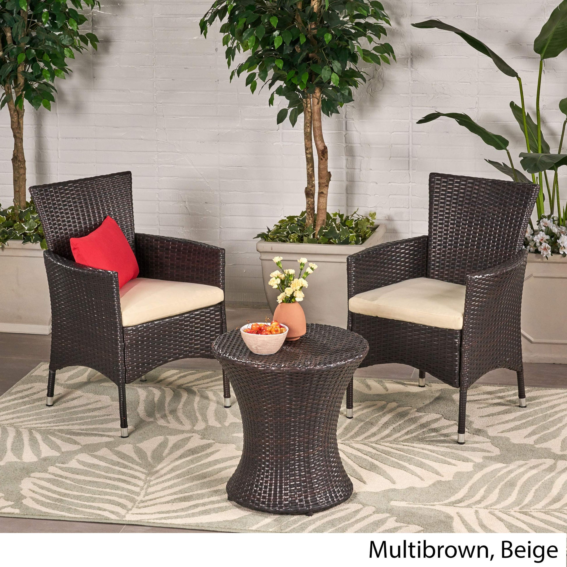 Malta Outdoor Wicker Chat Set, 3-Pcs Set, Multibrown / Beige