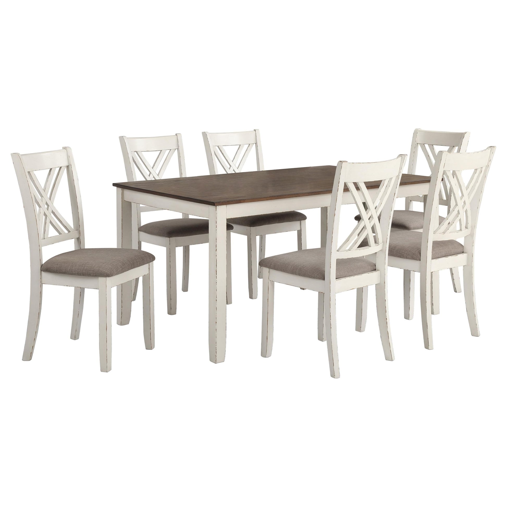 - [Light and Airy Farmhouse Appeal] A crisp vintage white finish, stylish double-cross back, and matching accents come together to complete this charming white dining set, perfect for farmhouse, cottage, or transitional dining rooms.