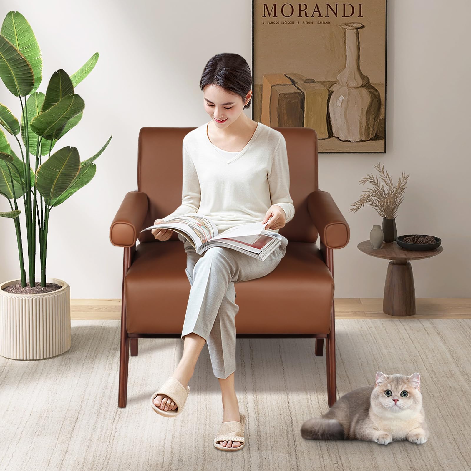 - ELEGANT AND BEAUTIFUL: PU leather is full of elegant mid-century retro flavor, rounded armrests and V-shaped wooden leg design to get rid of the traditional chair's square constraints, complete its modern appearance. And its simple beauty can easily match with various decorative styles. Perfect for living rooms, offices, study rooms, bedrooms, hotel lobbies, salons and more.