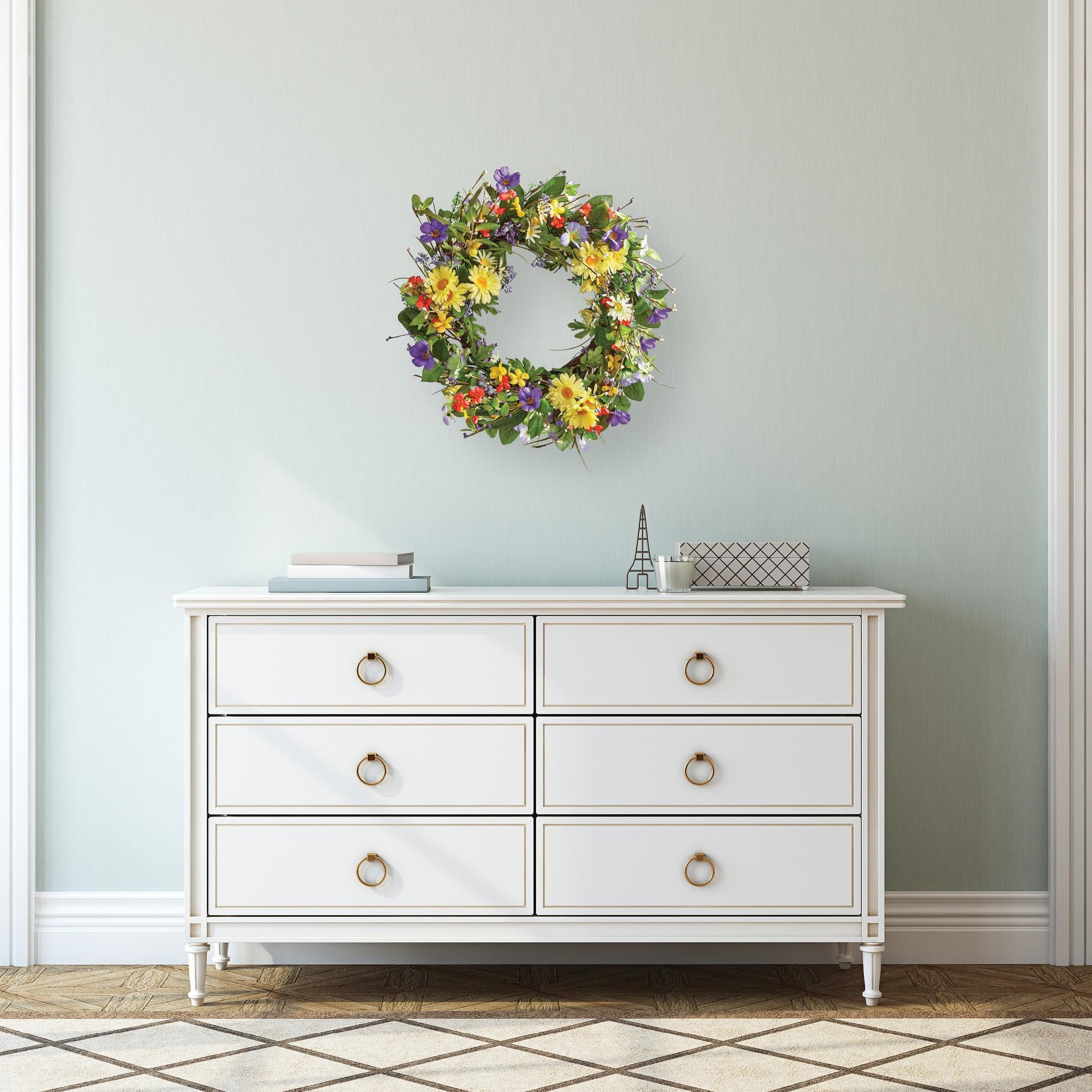 Wild Daisy Floral Twig Door Wreath, 19 1/2" Diameter - Home Décor for Any Room