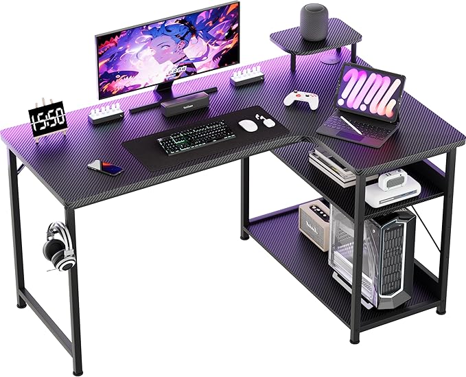 Gaming Desk L Shaped Desk Carbon Fiber Style Computer Desk Compatible