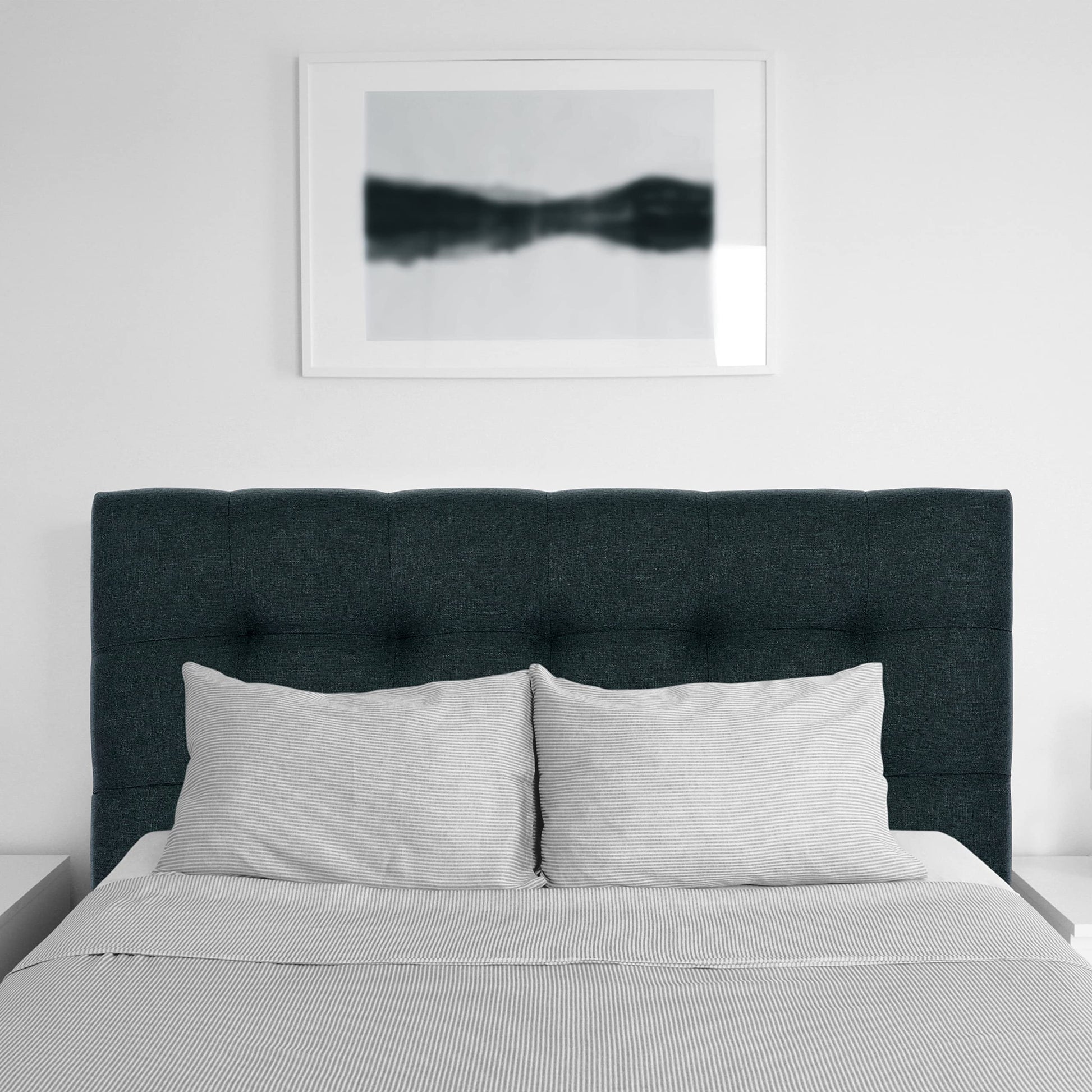 - Foam-padded headboard with square tufted detailing