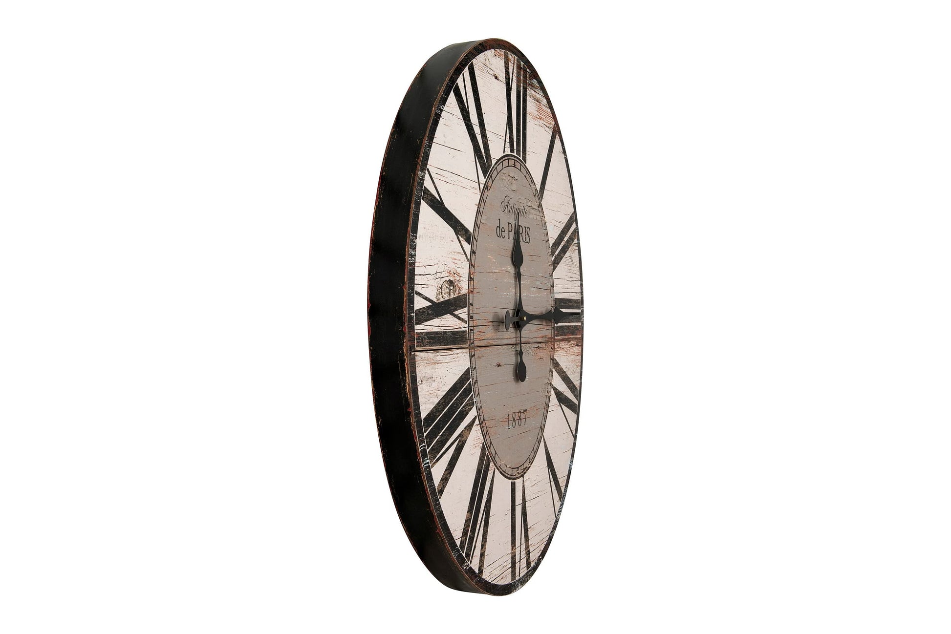 - A cozy and elegant accessory, this oval wood wall clock features a distressed white and grey finish and a classic design