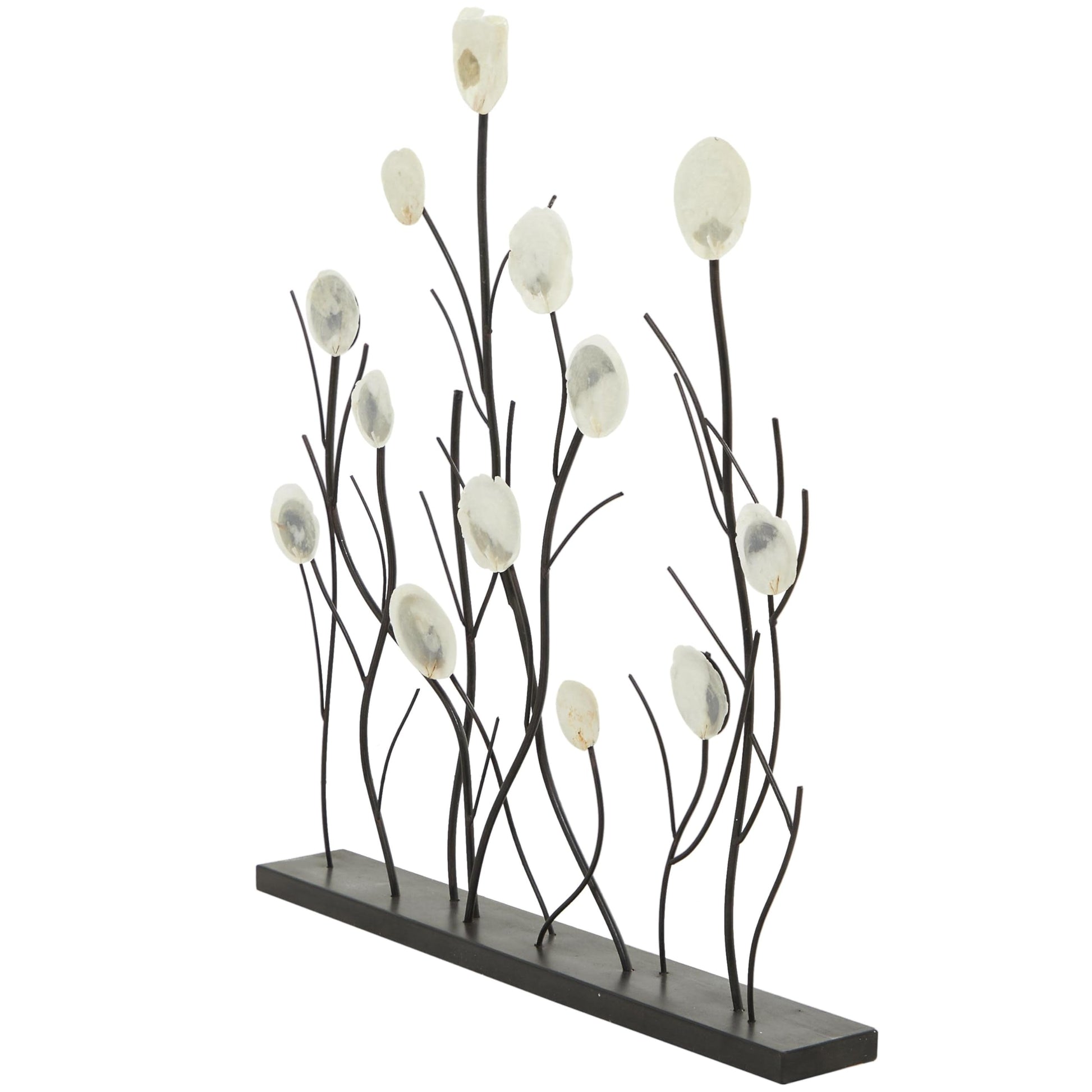 - METAL SCULPTURAL ACCENT: Made from iron and capiz, this black decorative sculpture features a unique blend of robust and delicate materials