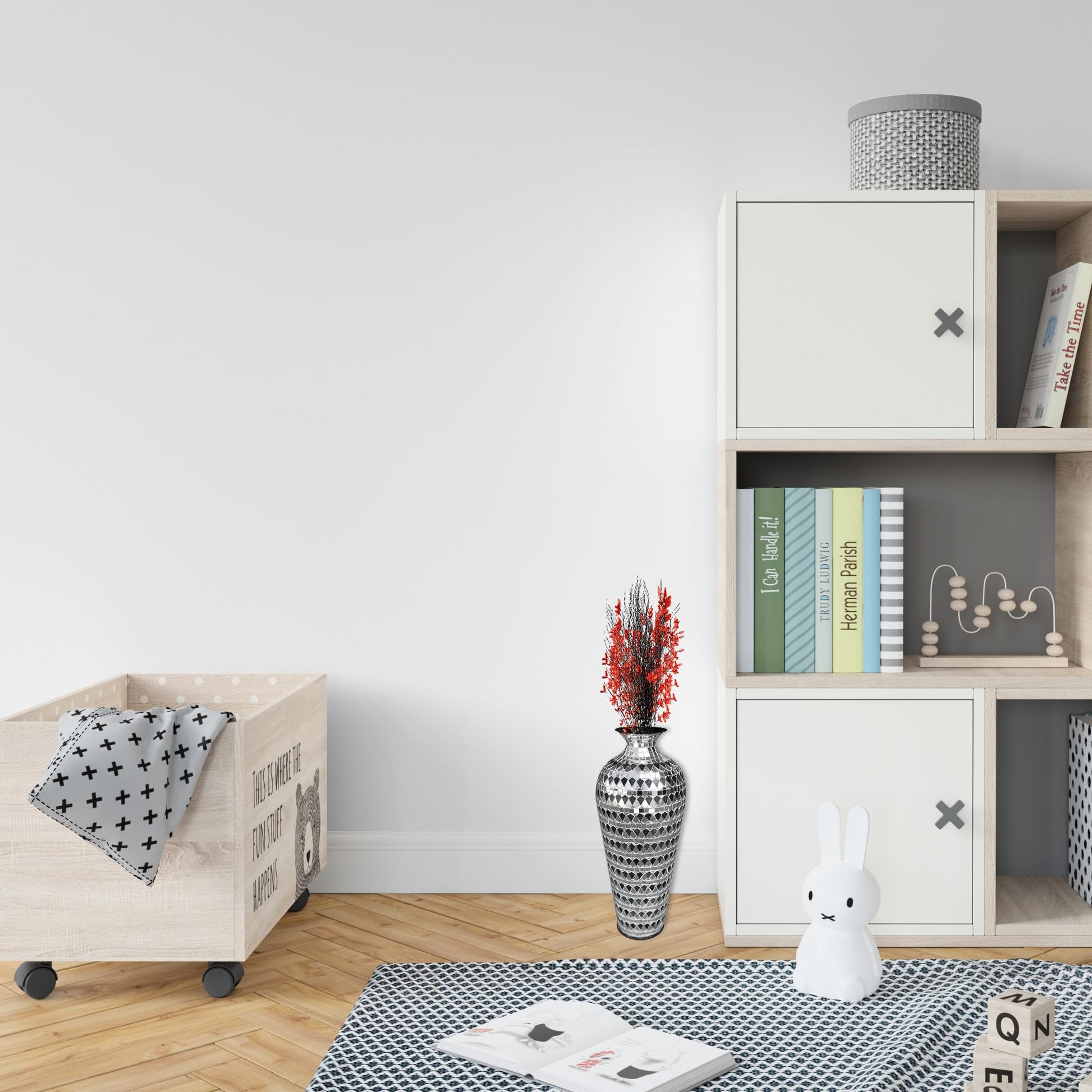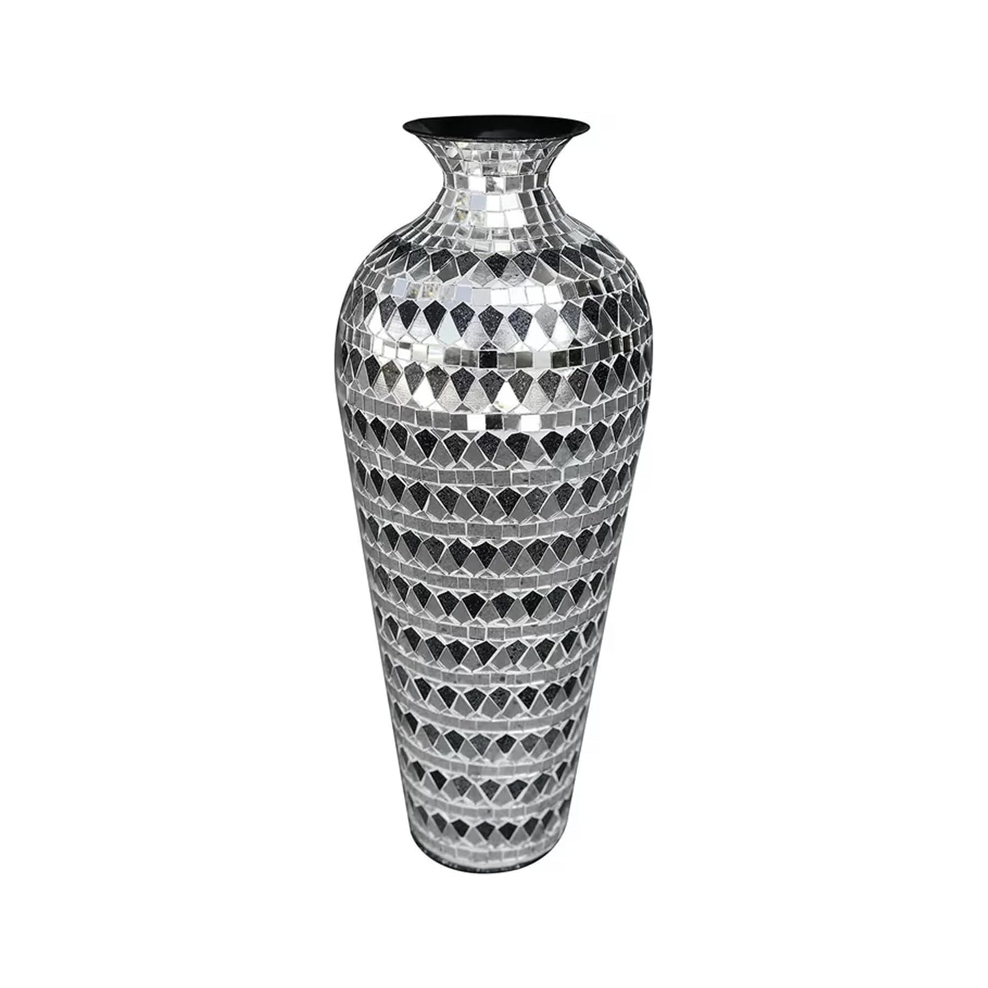 20 Inch Floor Vase, Mosaic Vase, Decorative Tall Vase, Accent Vase for Home Decor Geometric Pattern Designer Metal Vase with Glass Mosaic- Elegant Silver & Black Tessellation Pattern