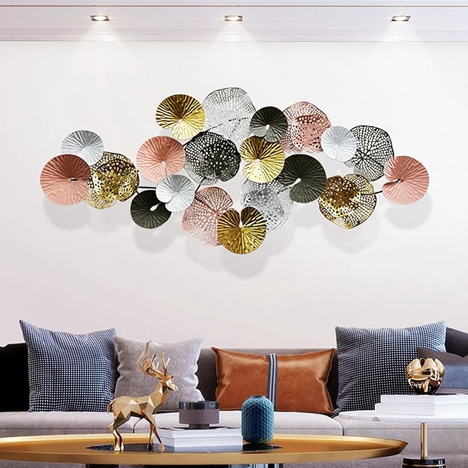 - Large Metal Wall Decor for Living Room : This large metal wall decor is multiple lotus leaves stacked on top of each other, 3D metal wall art will give you the character of vivid image on your wall. Blue, gold, and green colorful leaves wall decoration are stacking together for a natural feel.