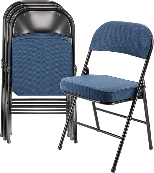 - Indoor/Outdoor folding dinner chairs are constructed of an all metal frame with comfortable padded seat and back, idel for extended outdoor events and large indoor venues. Great for adding extra seating for small intimate events too. 300 Lbs Weight Capacity.