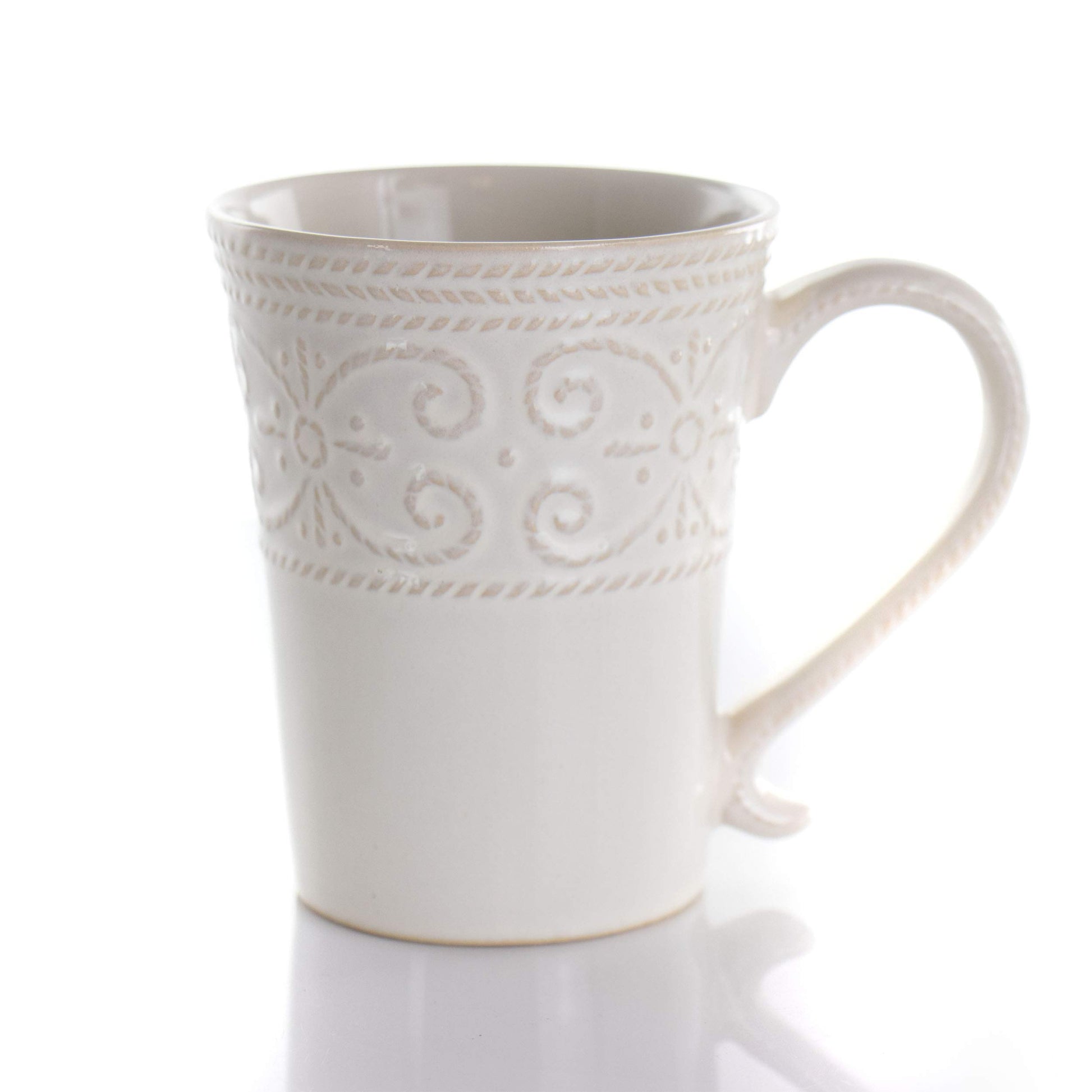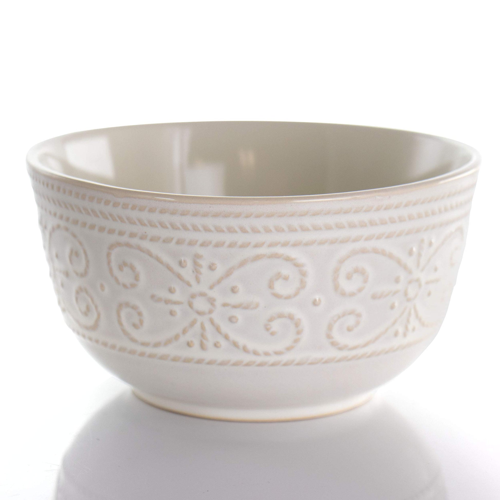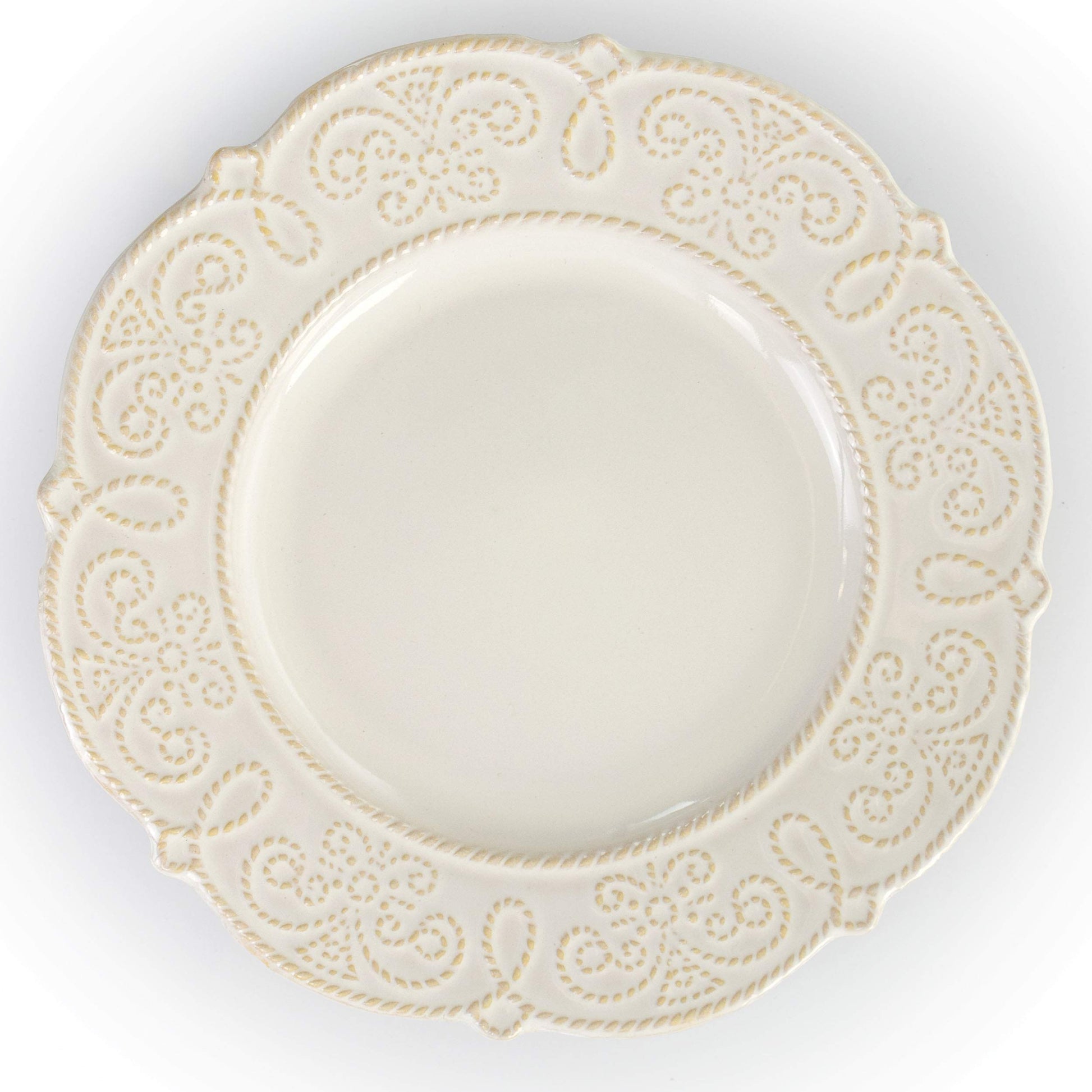 Round Decorated Stoneware Scallop Embossed Dinnerware Dish Set, 16 Piece, Luna