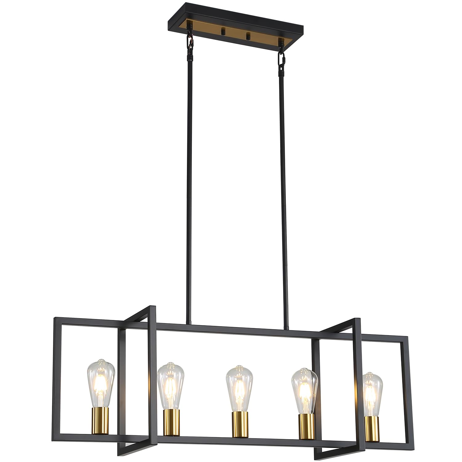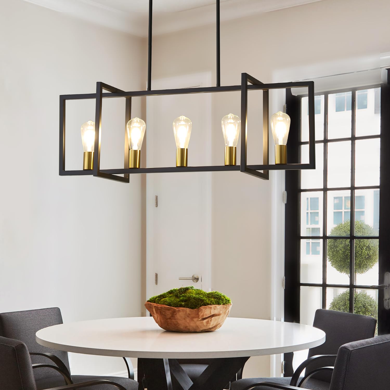 - Modern Design: The geometric frame of the linear pendant light is formed by 3 sturdy metal black rectangles intersecting and gold base design shows a minimalist modern farmhouse, Vintage, Industrial style to illuminate your dining table, Kitchen island