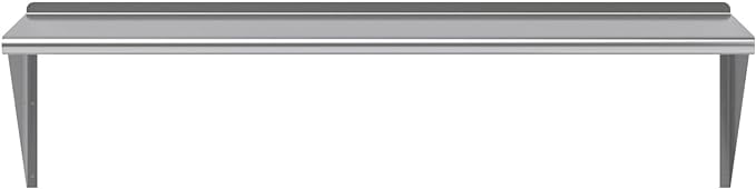 Details: Express KitcheQuip stainless steel wall shelves provide a stable and sanitary surface to store kitchen accessories, boxes, tools, cleaning equipment, and more. This NSF-certified table meets strict standards for public health protection and safety. The core structure of each shelf is 18 Gauge stainless steel, guaranteeing a lifetime of durability & reliability in the highest volume environments. Designed for commercial & home. Kitchens - Auto Shops - Bakeries - Carpenters - Tool Sheds - DIY Stations - Restaurants - Hospitals - Vets Product Details: - 18 Gauge 430 Stainless Steel - Two Brackets Included - 84" and 96" have 3 Brackets - 1.5" Back Rise - Bullnose - Round Edge