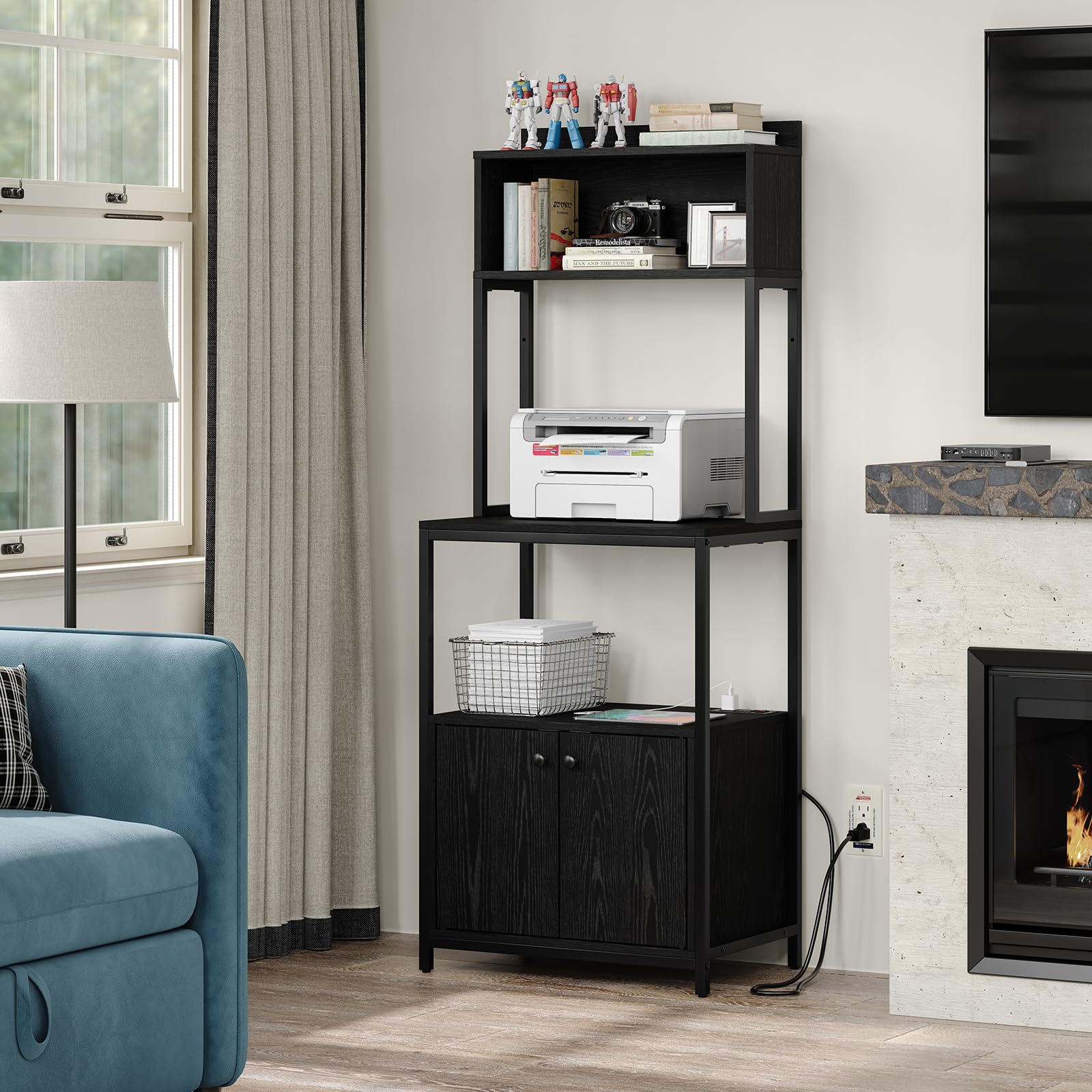 - This bakers rank has high on utility, not only a kitchen island, also as an elegant bookcase, microwave stand, spice rack organizer, bathroom cabinet, wine board for living room, and can harmonize with any other black furniture in any room. The vertical structures doesn’t take up space and add more storage space for bedroom, kitchen, pantry or bathroom.