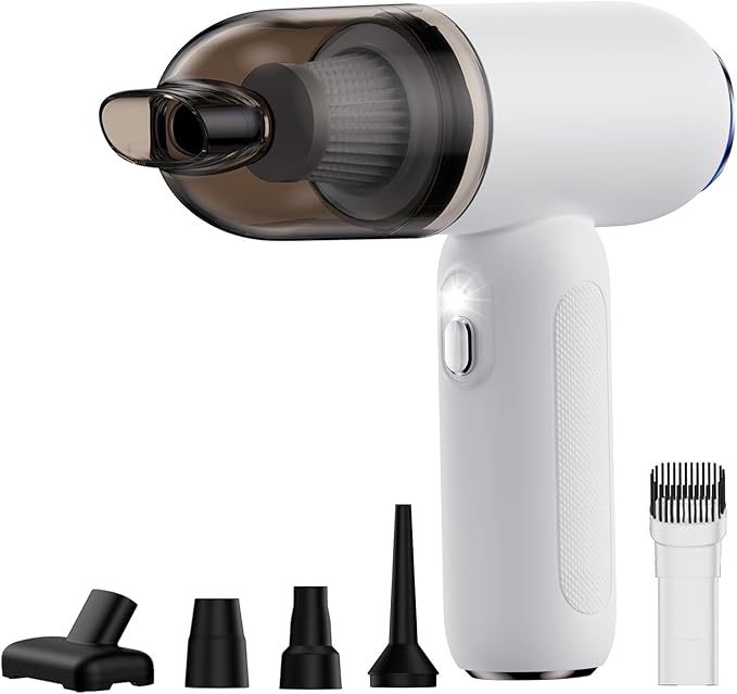 - Keyboard handheld vacuum cleaner comes with a variety of accessories for blowing, sucking, and inflating multiple scenarios of use. Equipped with an LED light, making it easy to spot dust in any corner. With two adjustable wind speeds to meet various cleaning needs.
