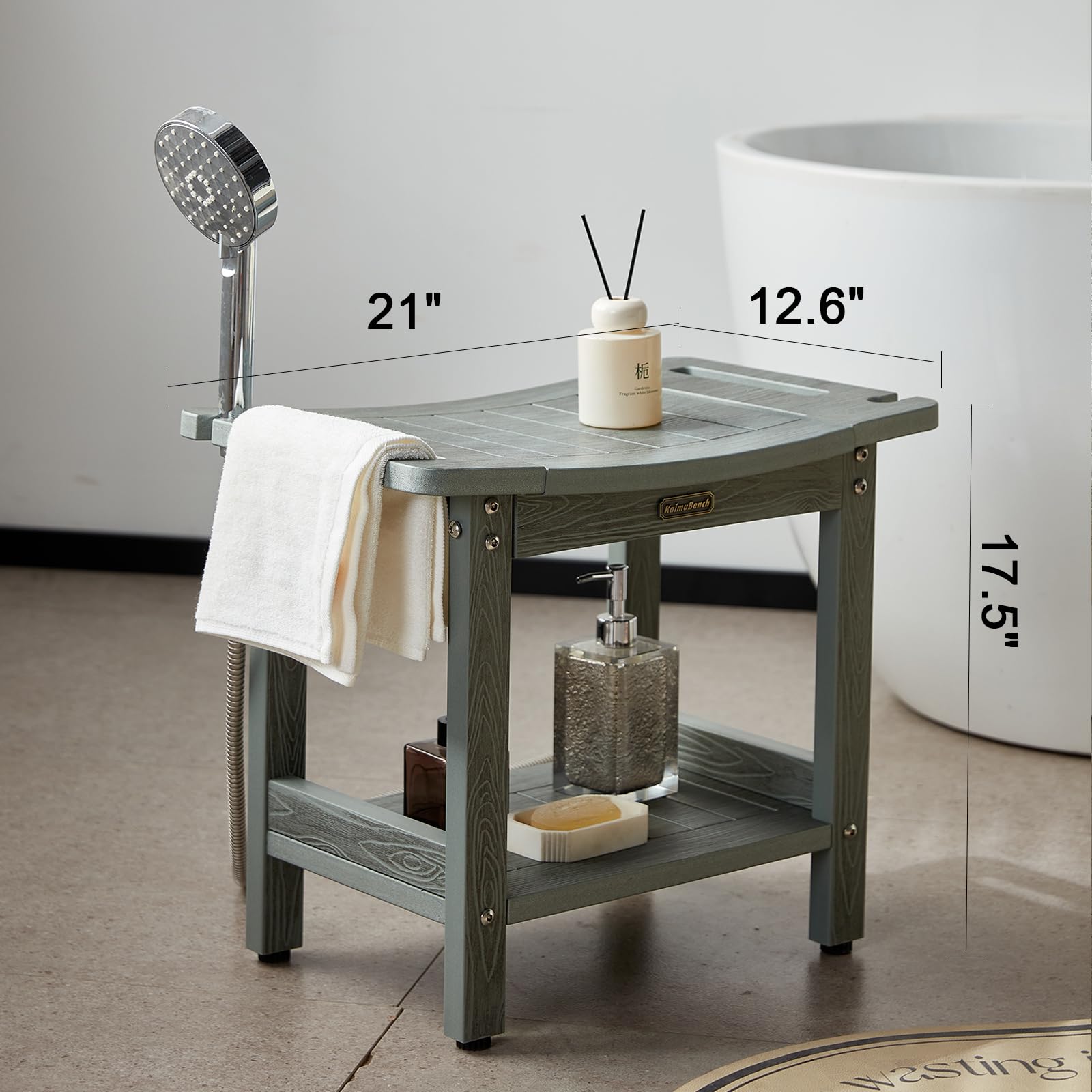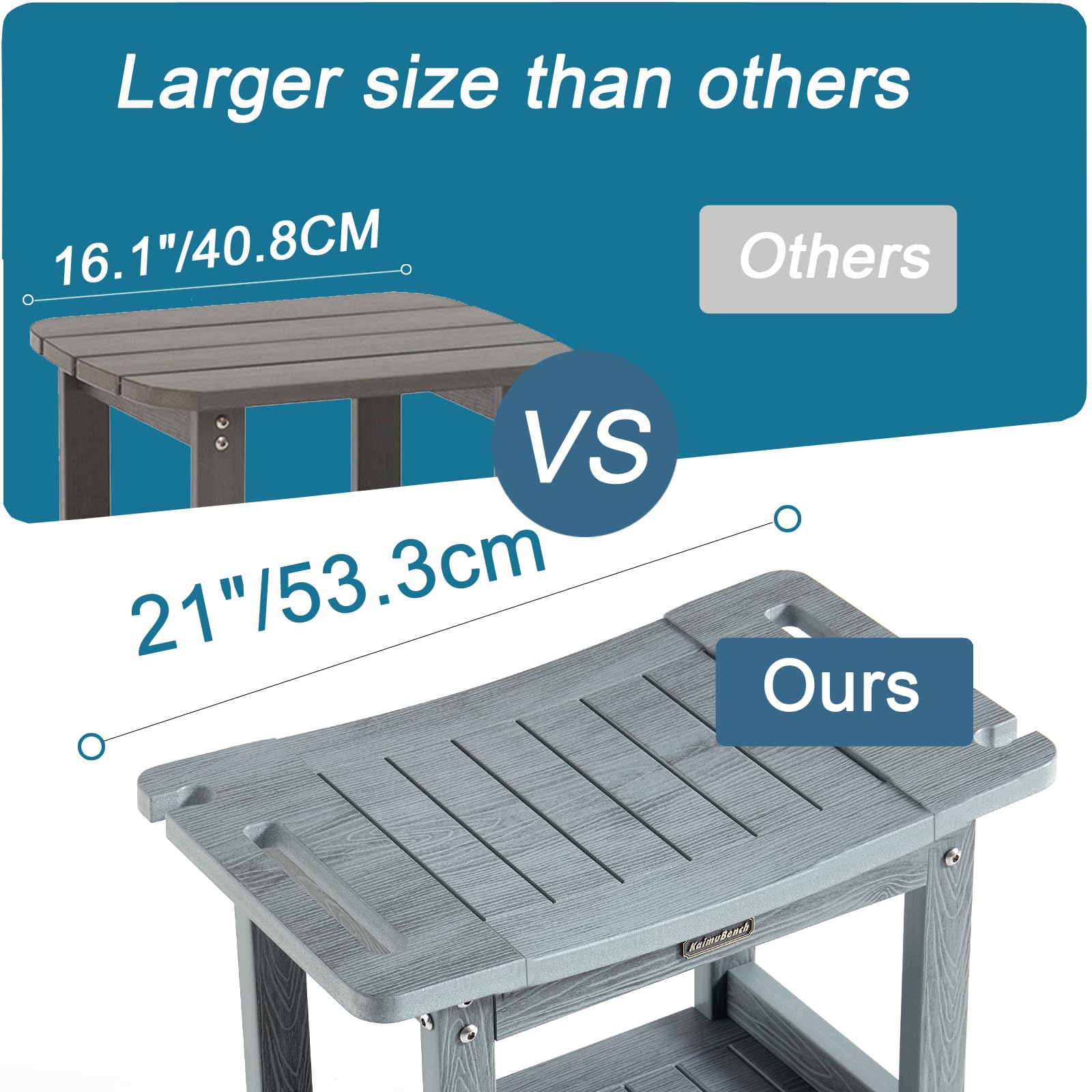 - 【Material & Size】Our poly shower bench is made of HDPS (polystyrene) with 304 stainless screws which never gets rust, this material is not easy to get mold, rotting or crack after prolonged exposure to humidity, no splinters and no maintenance, 21 x 12.6 x 17.5 Inches enough large to sit (THE MOST IMPORTANT IS NO MAINTENANCE)