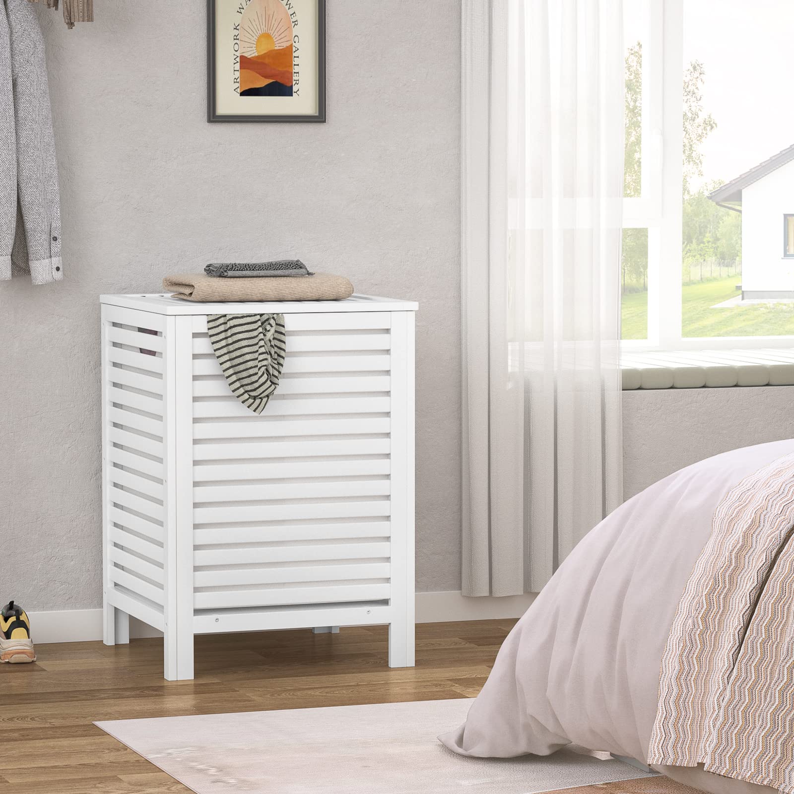 - REMOVEABLE LINER BAG - Stable bamboo construction will outlast loads of laundry, the divided liner bag is removable. When it’s time to do the laundry, just lift the lid and take out the inner bag, the bamboo laundry basket itself can stay where it is, as a decorative detail for any room. Removable liner bag with handles makes it easy to move this laundry basket from room to room. Please do not put the liner bag into the washing machine, it cannot be used as a laundry bag.