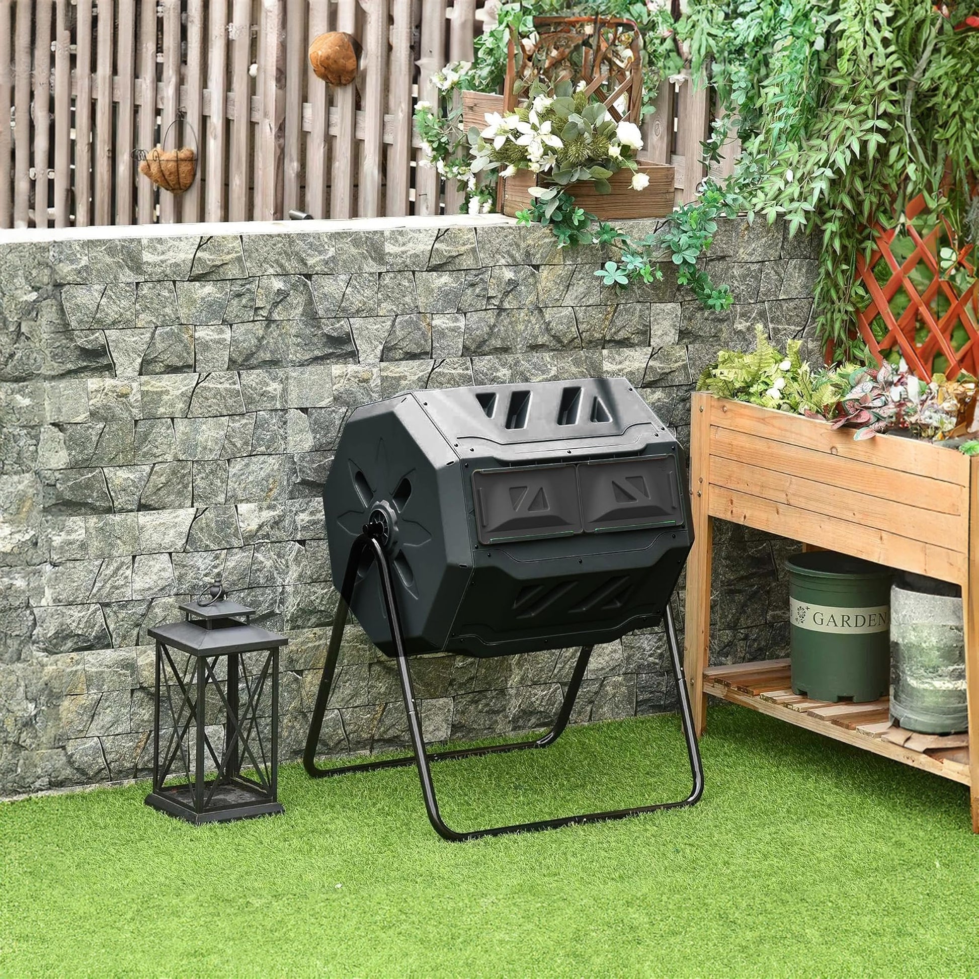 Compost Bin Outdoor, 43 Gallon Dual Chamber Tumbling Composting Bin