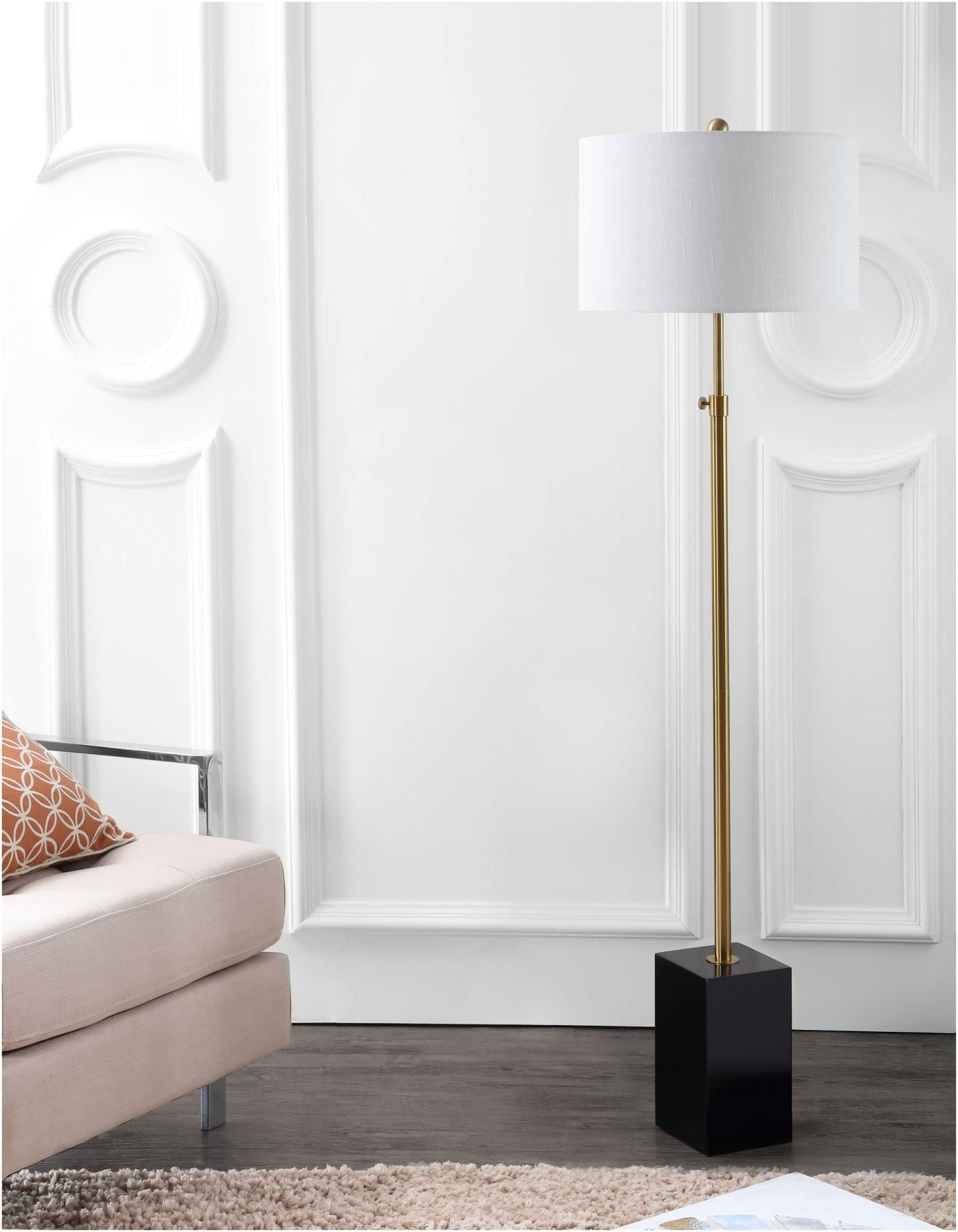 - Simple and modern, this brass and black wood floor lamp will stun in any room