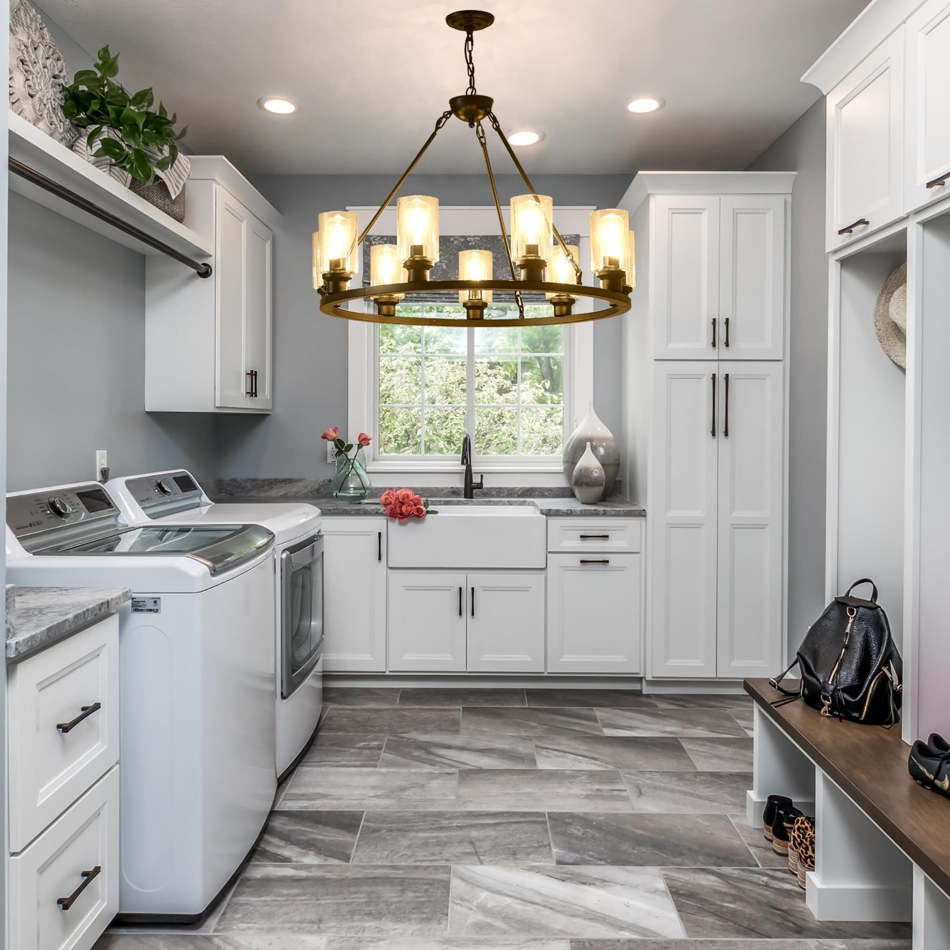 - Wheels: 32 inches in diameter, min/max hanging height 25"-94" This rustic chandelier is perfect for lighting kitchen islands, dining rooms, foyers, staircases, entryways and living rooms. High ceiling fixture requires 9 E26 base bulbs (bulbs not included), compatible with LED bulbs, incandescent, CFL, Edison bulbs, halogen bulbs, fully dimmable when using dimmable bulbs and compatible dimmer switch (switch not included).