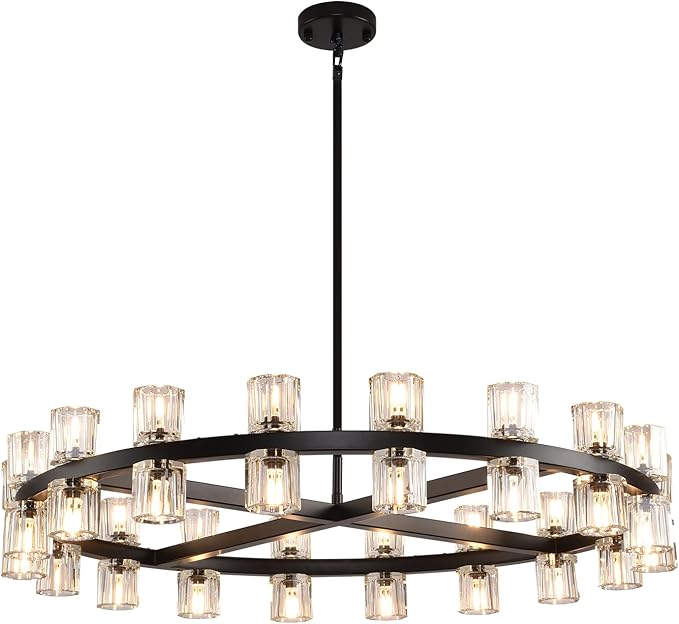 - Modern Carriage Wheel Chandelier: This crystal gold brass chandelier is thoughtfully designed to seamlessly blend with any home décor style. The 48-inch integrated frame is precision-cut by machines, showcasing smooth lines and exquisite craftsmanship. The K9 crystal reflects a captivating glow, becoming the focal point of any room. It is the perfect decoration for large spaces, adding elegance and luxury to your home.