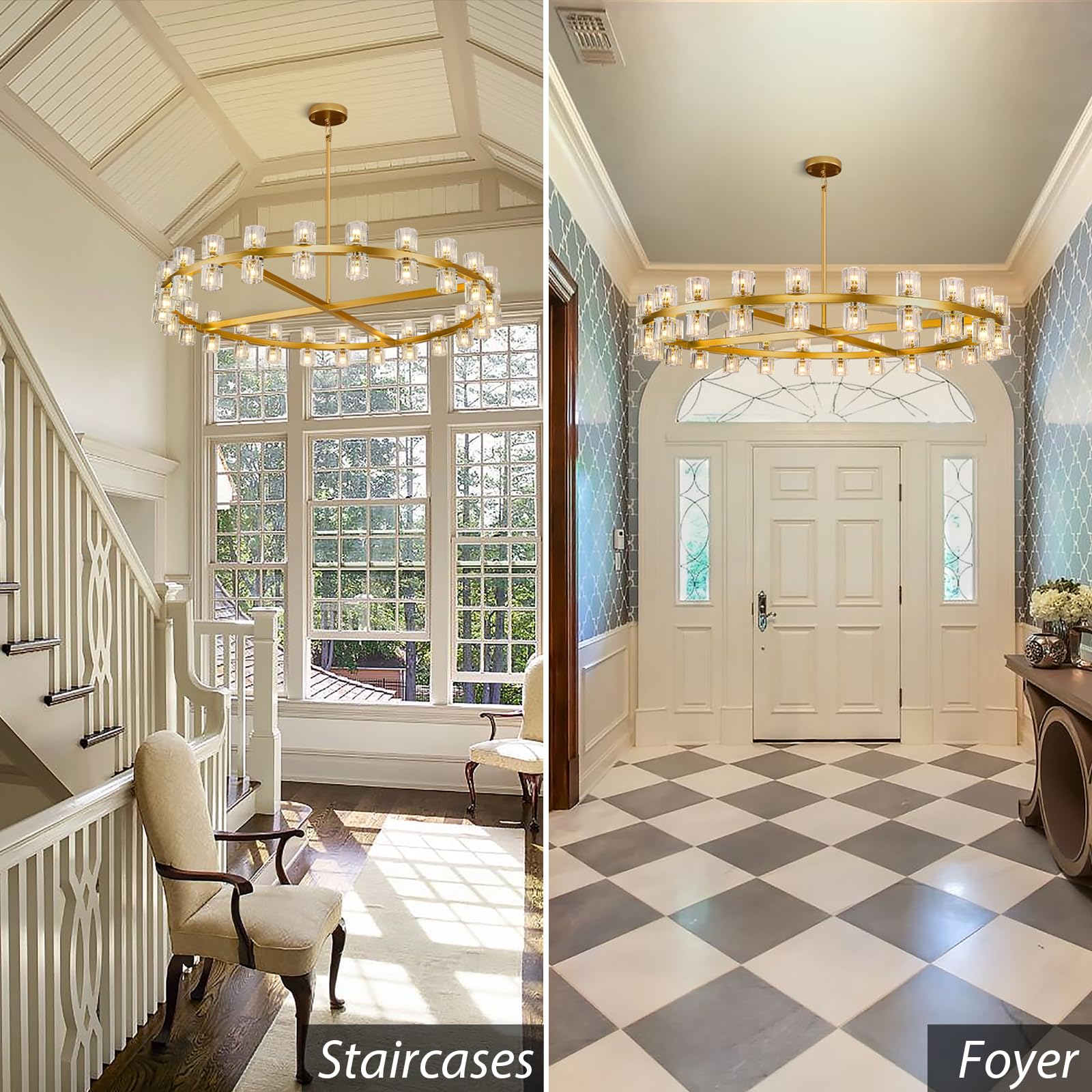 - Versatile for Multiple Scenes:The Arcachon Brass Gold Contemporary crystal Chandelier provides warm and elegant lighting for a variety of spaces.The 48-inch size is perfect for most areas such as living rooms, dining rooms, entrances and staircases. Whether your home style is vintage, rustic, industrial, or modern, this chandelier blends in perfectly and adds a touch of elegance and style to any room.