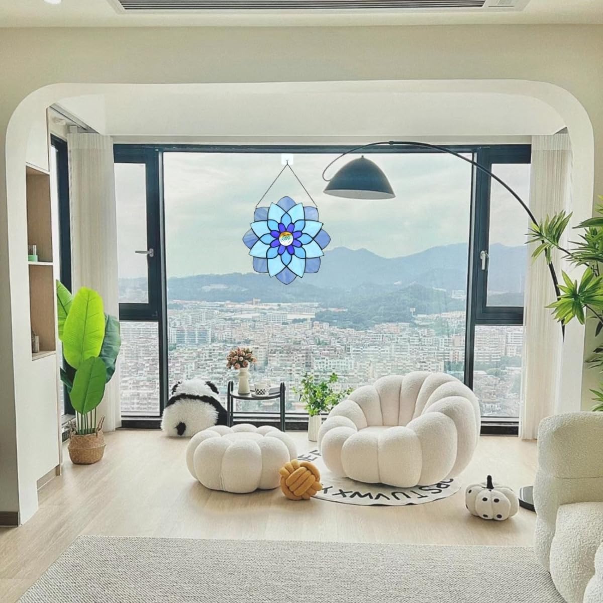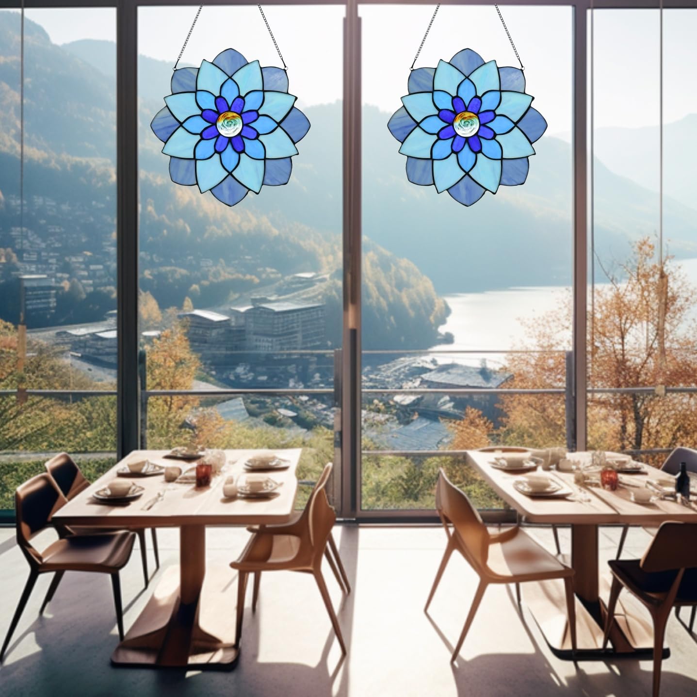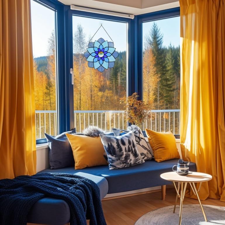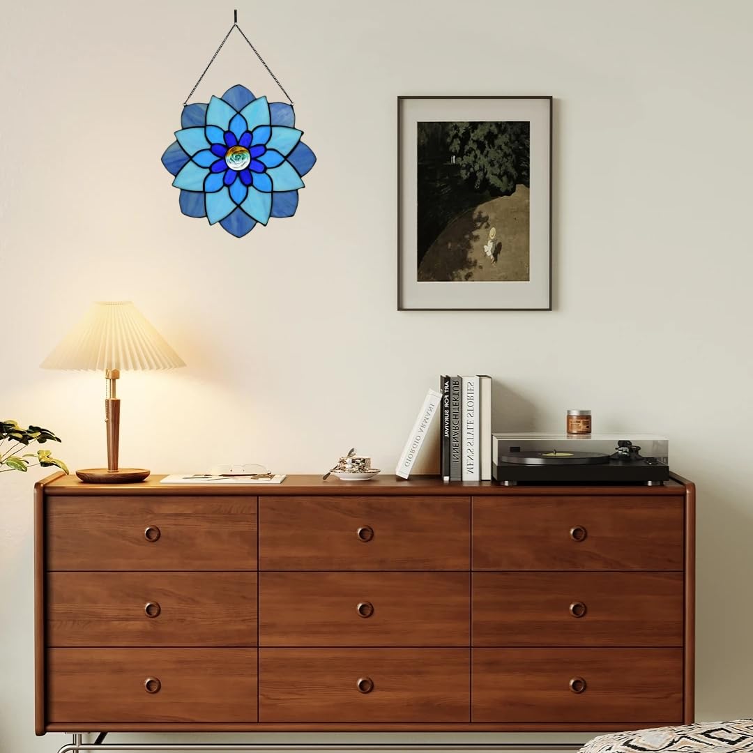 12 Inch Round Stained Glass Window Panel Tiffany Style Ornament Handmade Blue