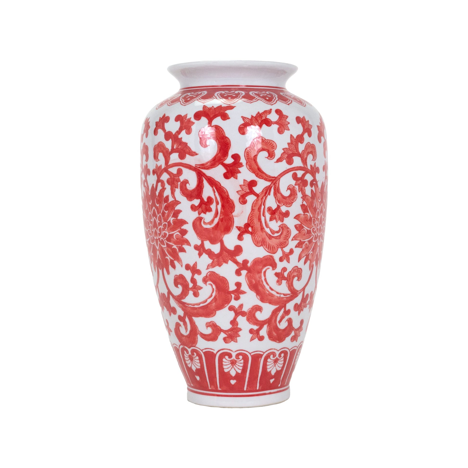 - Features a classic white design with a beautiful red floral motif, perfect for adding a touch of traditional elegance to your space.