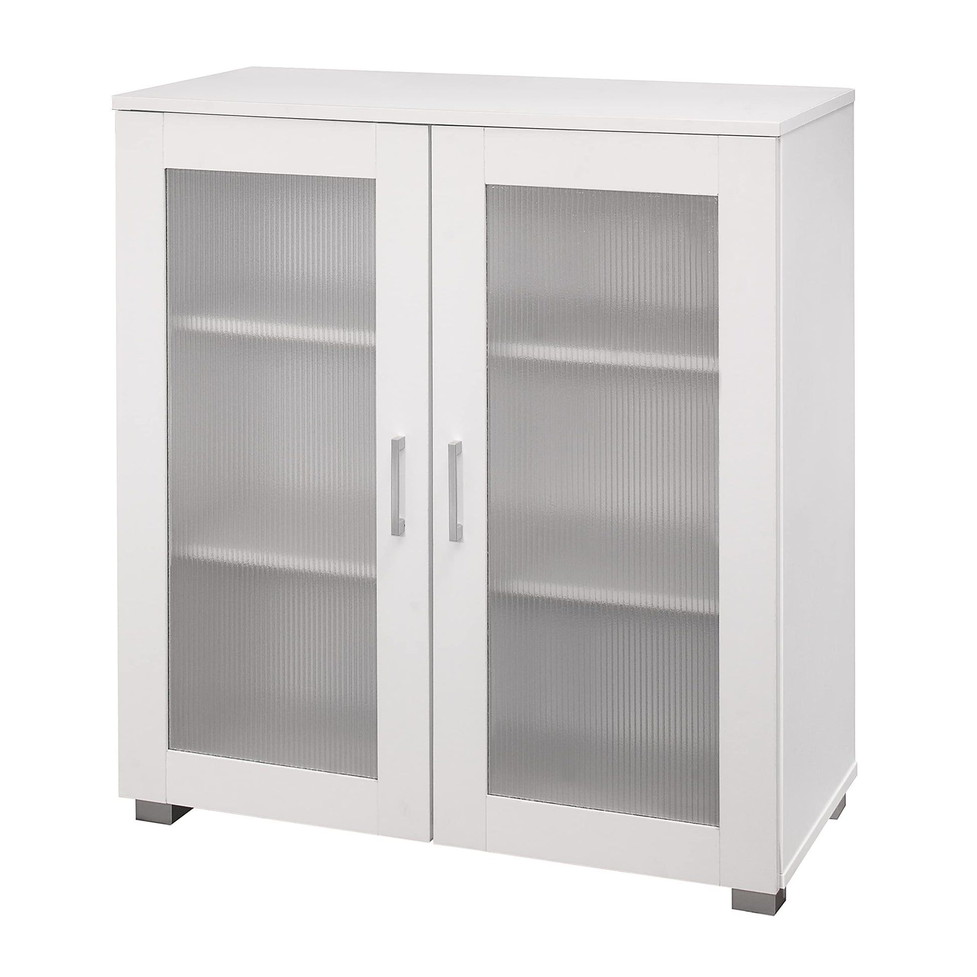 - This storage cabinet with Sideboard Buffet Overall Dimensions is 32"L x 16" W x 34"H and has a White finish. Our doors are frosted with PVC sheets, making it an elegant display case for your favorite curiosities.