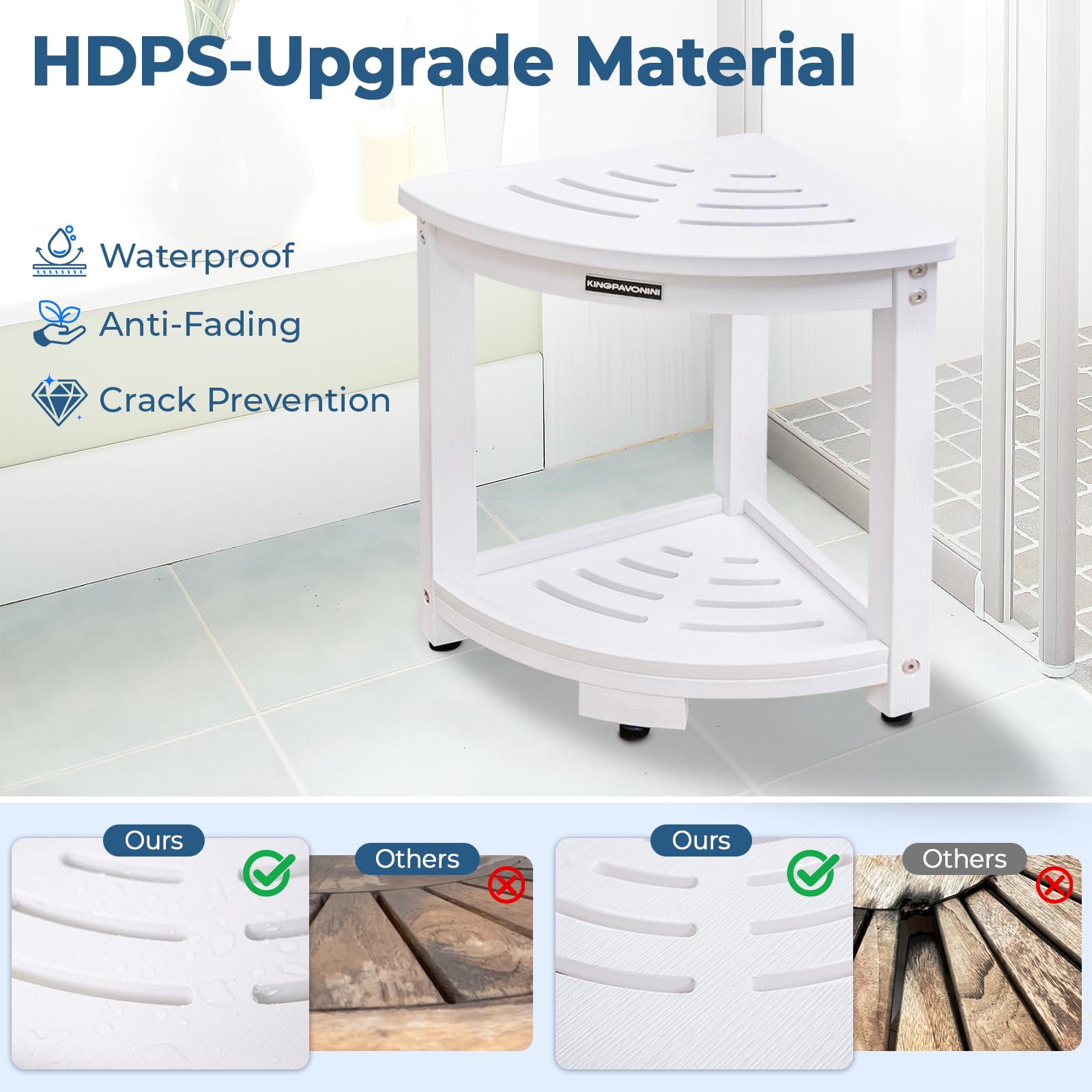 - 【Totally Waterproof & Anti-Crack】KingPavonini corner shower stool is made of HDPS material, better quality than HDPE material, with smooth polished edges, burr-free surface and solid quality. Compared with the wooden shower stool, it has the advantages of being completely waterproof、not easy to crack and anti-fading, not easy to age, and is very suitable for long-term use