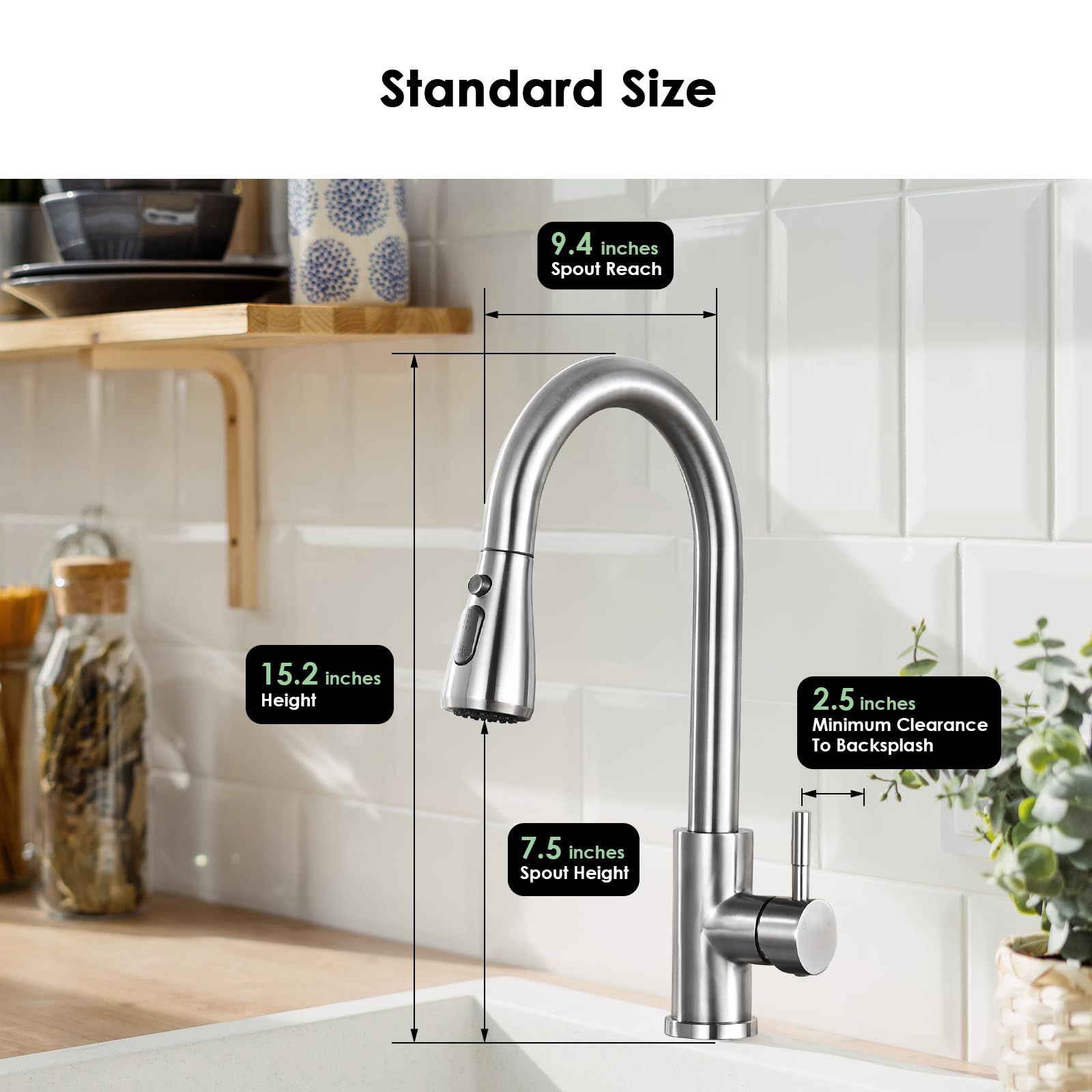 - Multifunctional Spray Head: Kitchen faucet with pull down sprayer comes with multifunctional 3-Mode spray head(Stream/Spray/Pause), suited for various kitchen tasks like washing fruits, vegetables, or rinsing dishes. This versatility kitchen faucet allows you to switch between a powerful stream for heavy-duty cleaning and a gentle spray for more delicate rinsing