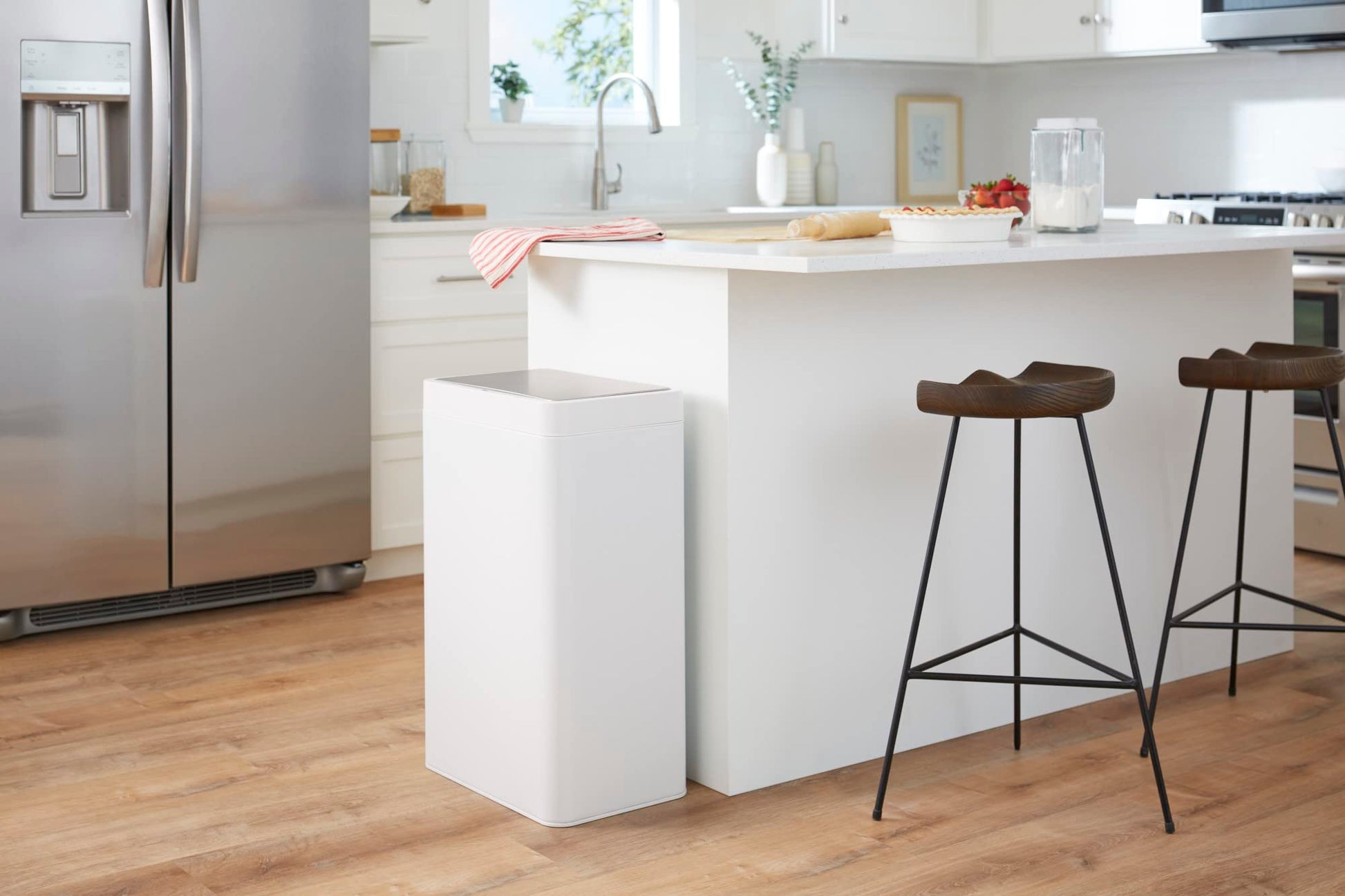 KOHLER 13-Gallon Touchless White Stainless Steel Trash Can, Hands-Free Motion Sensor Lid, Durable, Fingerprint-Resistant, Easy to Clean, K-23825-STW