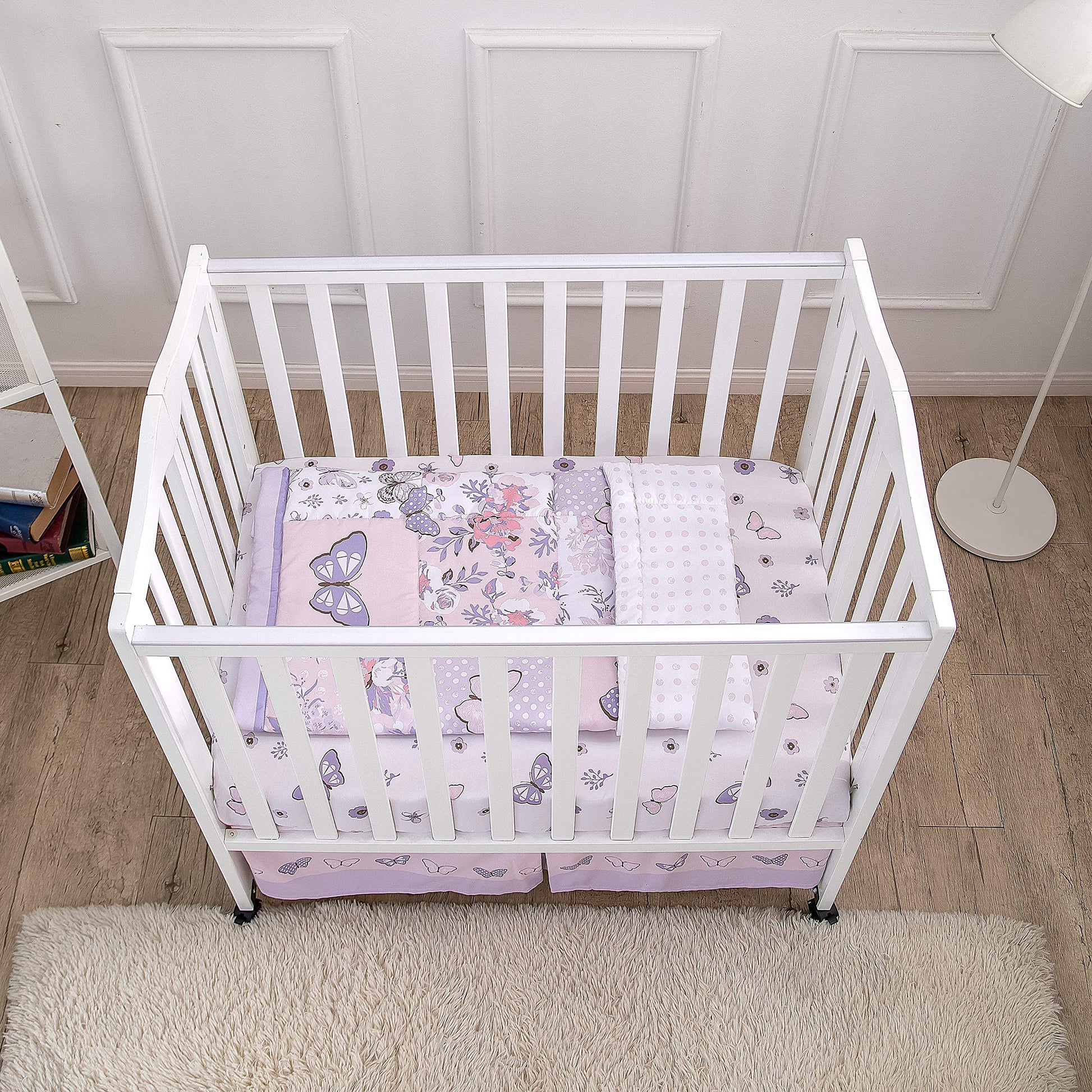 Baby Mini Crib Bedding Set for Girls, Pastel Purple Butterfly, 3 Piece Crib Set