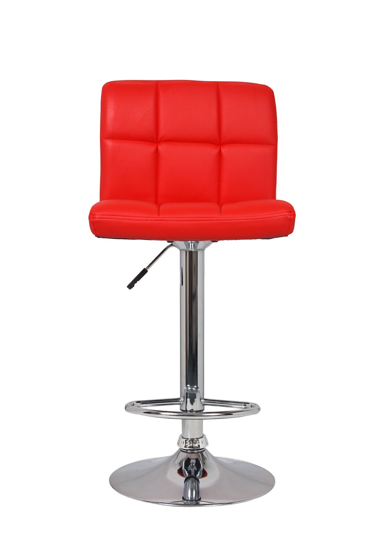 2 Barstools Adjustable Swivel Faux Leather Square Stitch Design Red Color